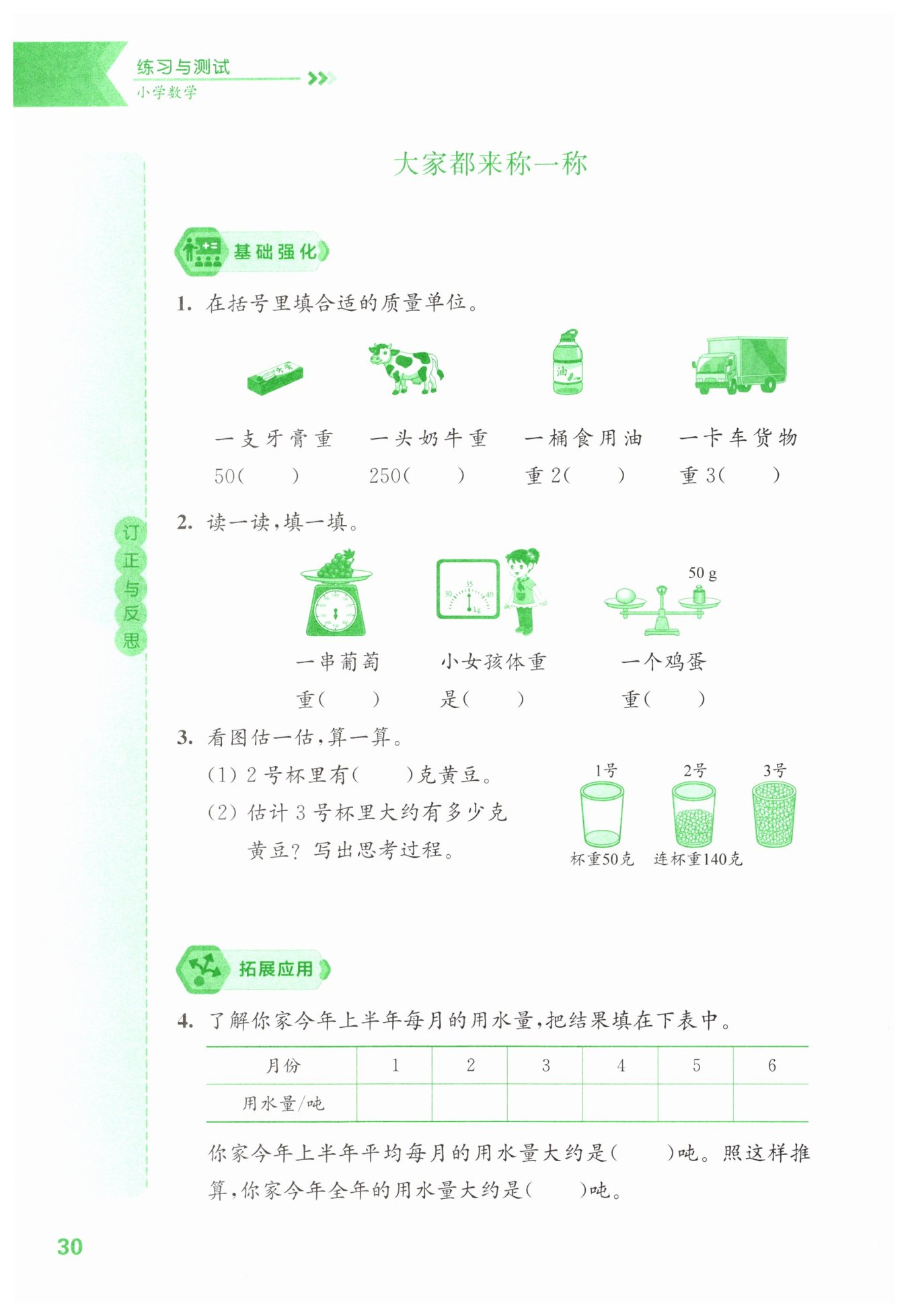 解:已知$1$號(hào)杯重$50$克,$2$號(hào)杯連杯重$140$克,則$2$號(hào)杯里黃豆重$140 - 50=90$克。