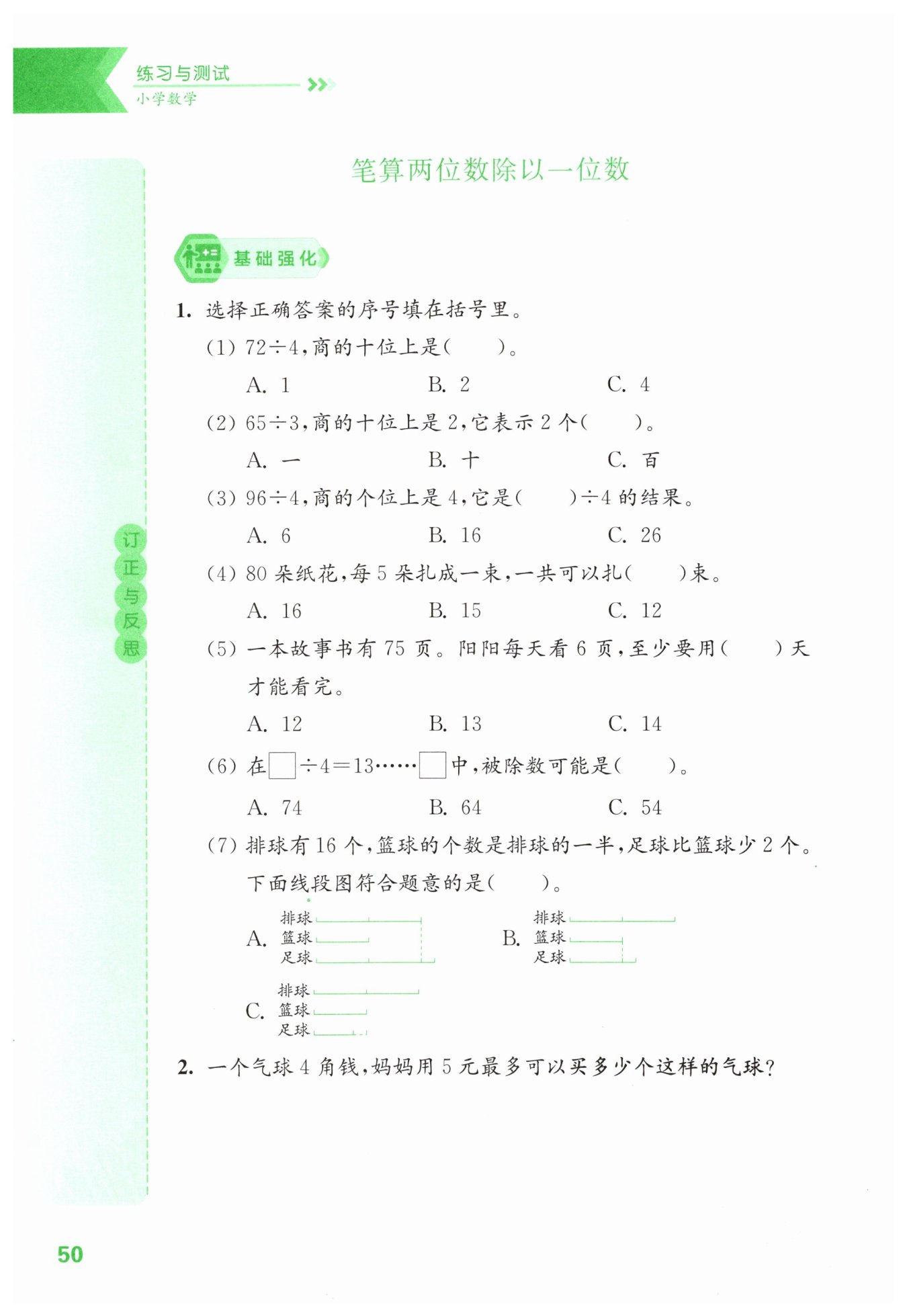 可買氣球個(gè)數(shù):$50\div4 = 12$(個(gè))$\cdots\cdots2$(角),其中$2$是余數(shù)。