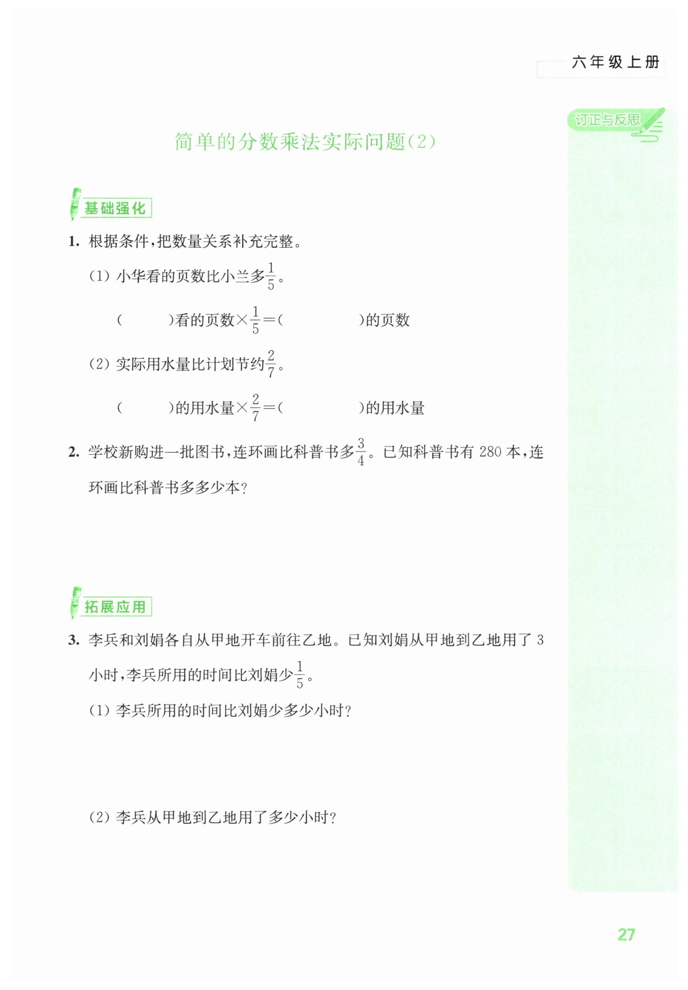 答:李兵所用的時(shí)間比劉娟少?$\frac 35$?小時(shí)。