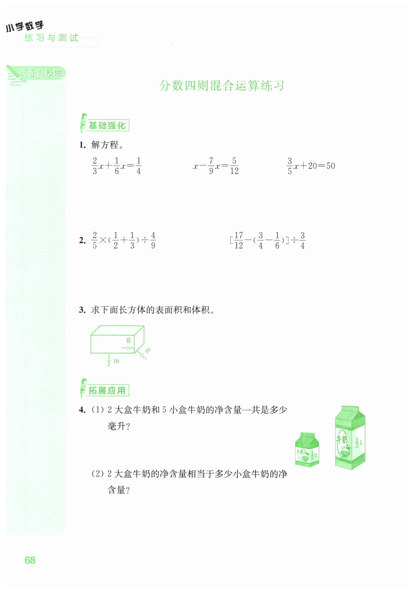 答:?$2$?大盒牛奶的凈含量相當(dāng)于?$5$?小盒牛奶的凈含量。