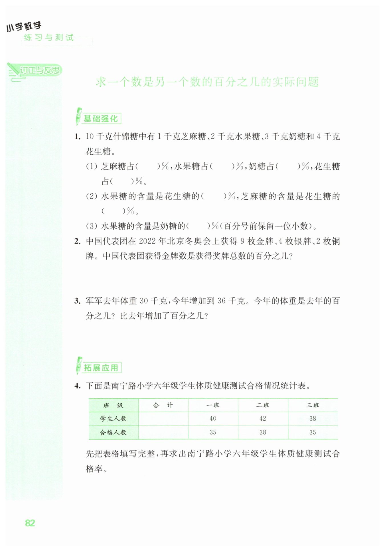 答:南寧路小學六年級學生體質健康測試合格率是90%。
