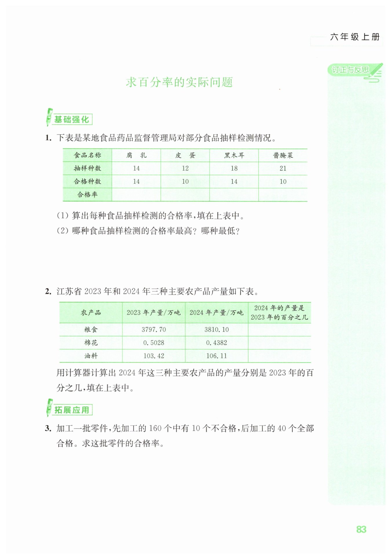答:腐乳抽樣檢測的合格率最高,醬腌菜的合格率最低。