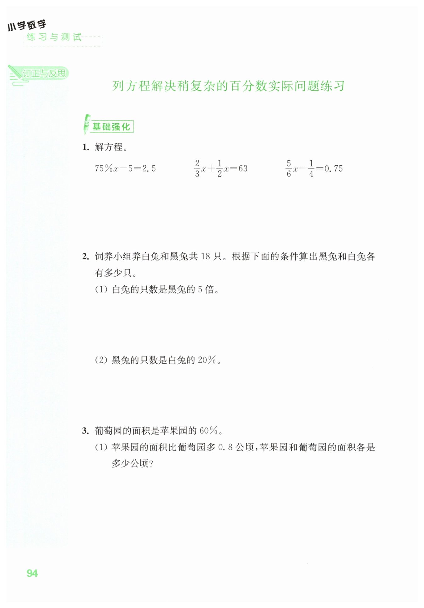 解:設(shè)蘋果園的面積是x公頃,則葡萄園的面積是60%x公頃。