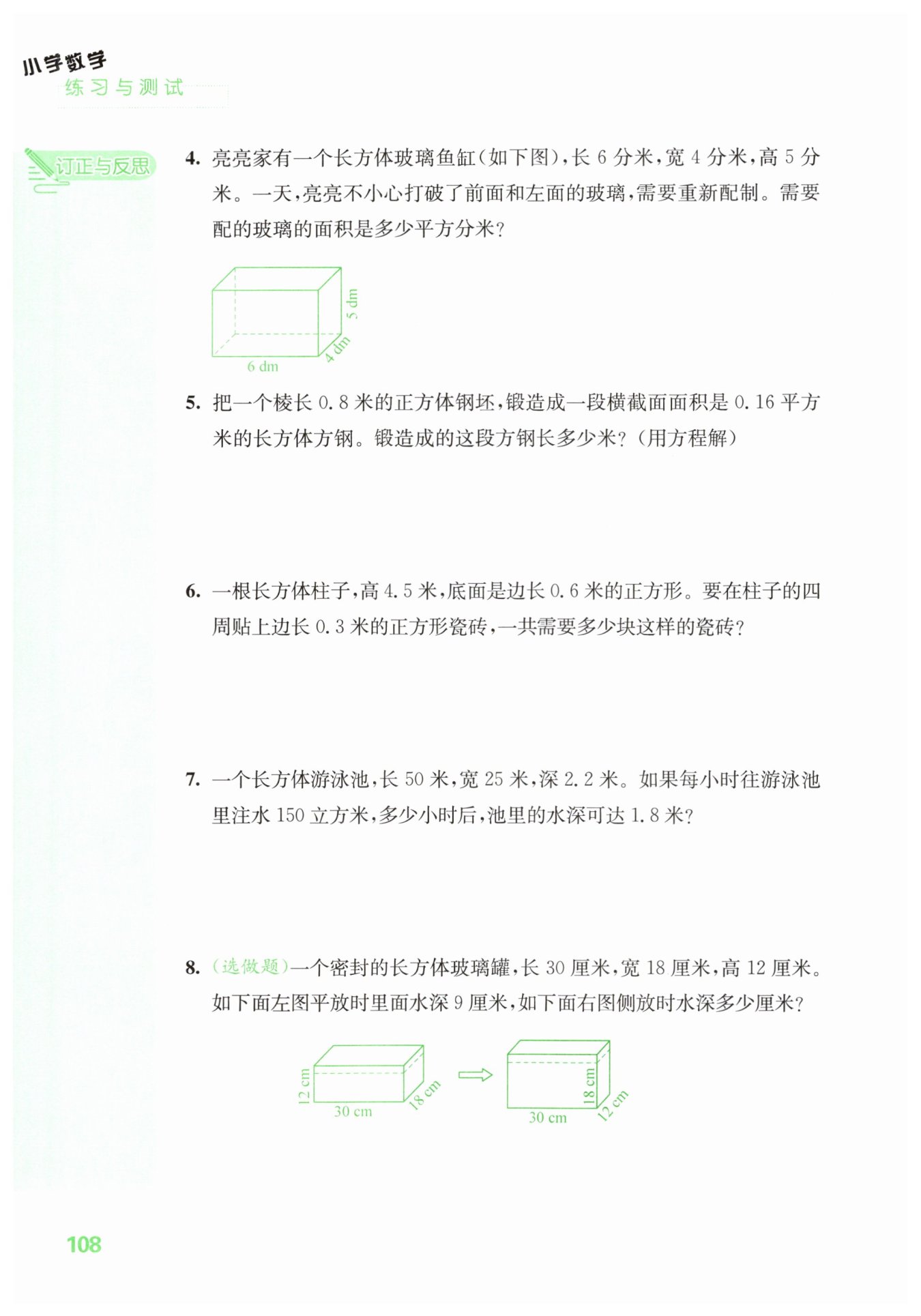 30×18×9÷30÷12=13.5 (厘米) 答:側(cè)放時水深是13.5厘米。