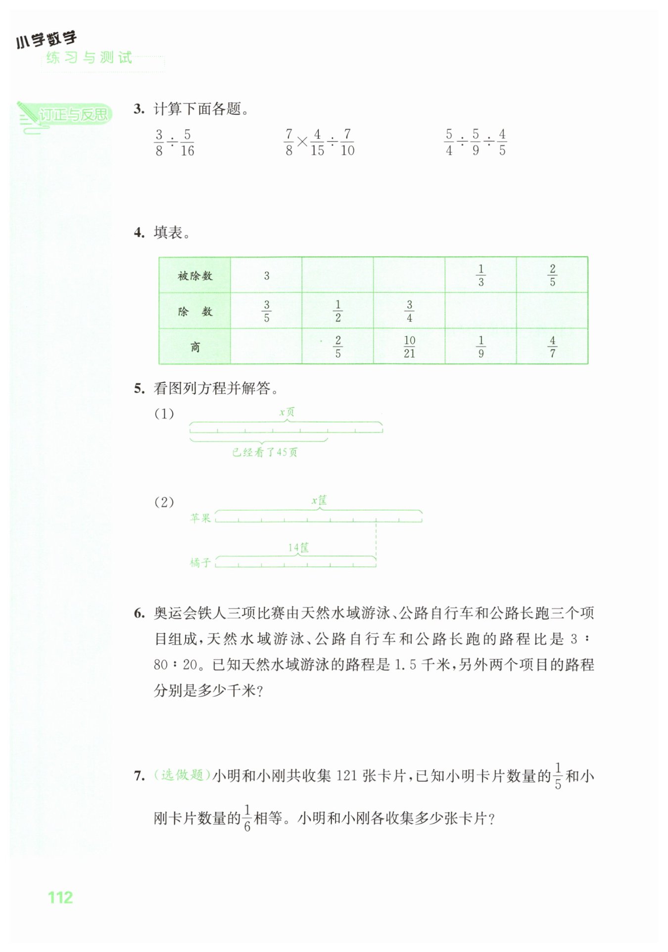 小剛與小明卡片數(shù)量比?$= \frac {1}{5}$?:?$\frac {1}{6}=6$?:?$5$?