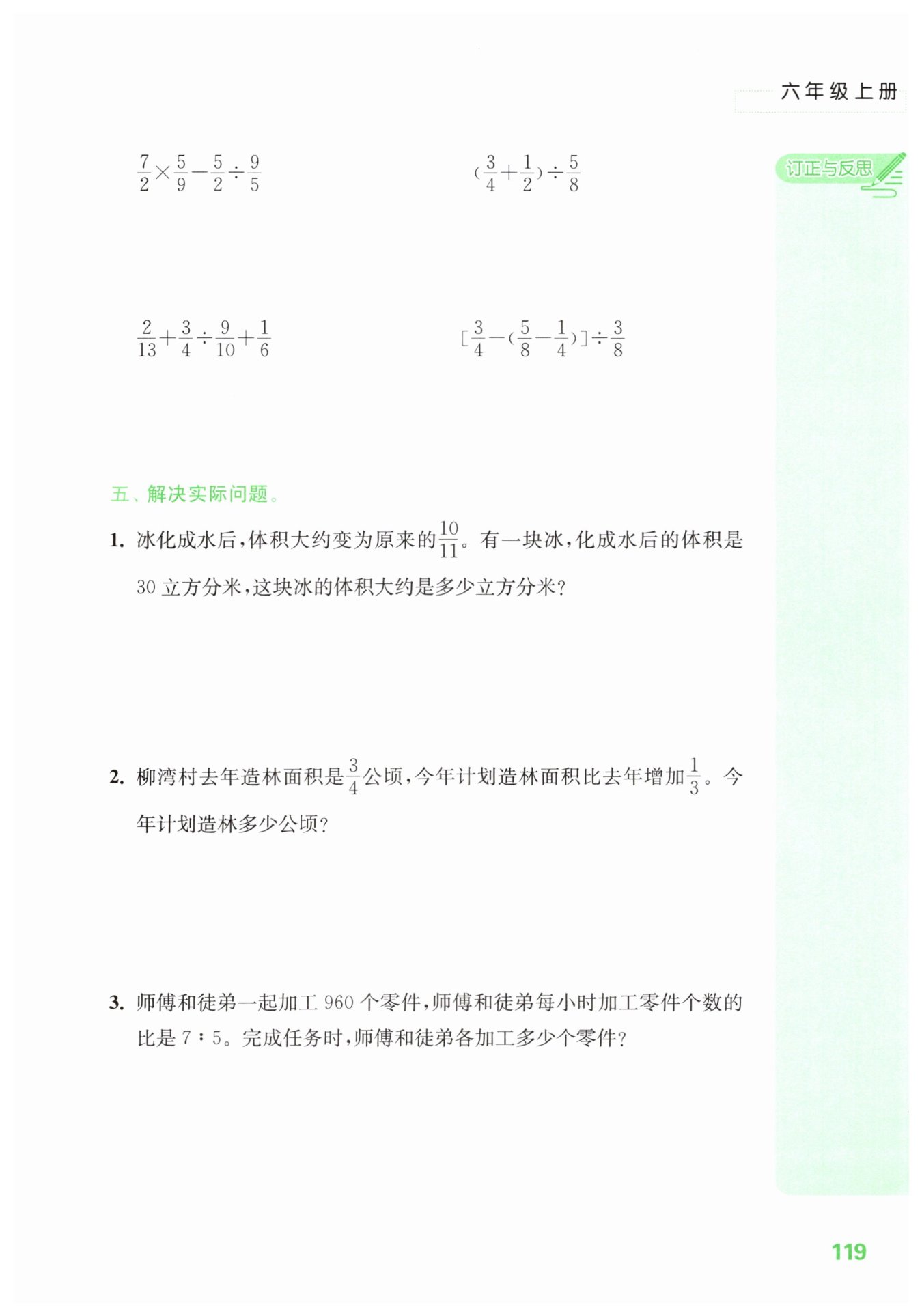 ?$=[\frac 34+\frac 14-\frac 58]÷\frac 38$?