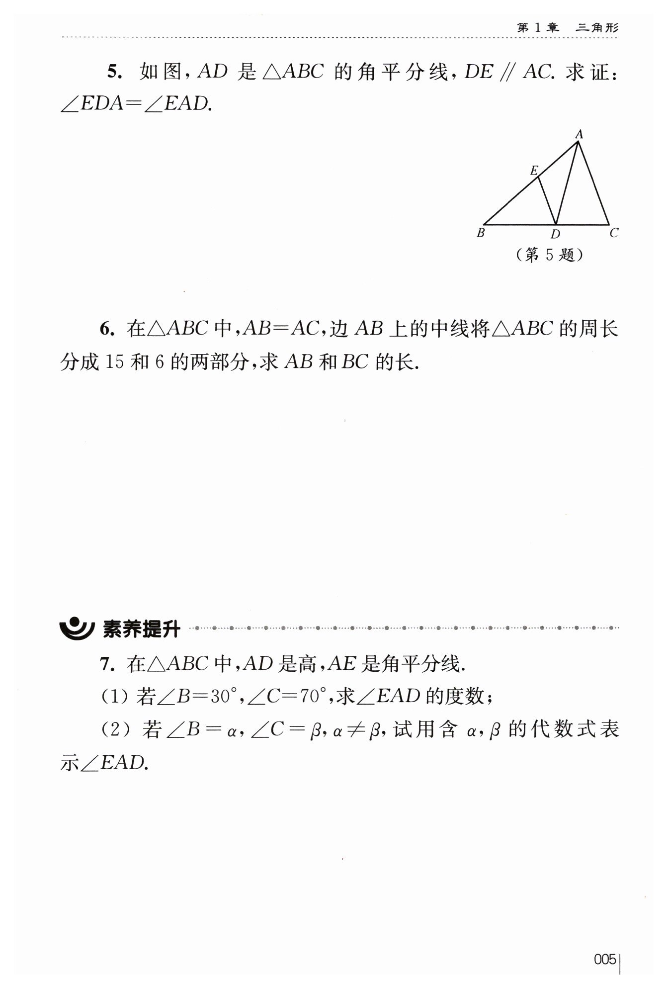 ∵?$AE$?是角平分線,∴?$∠BAE=∠CAE=\frac 12∠BAC = 40°$?
