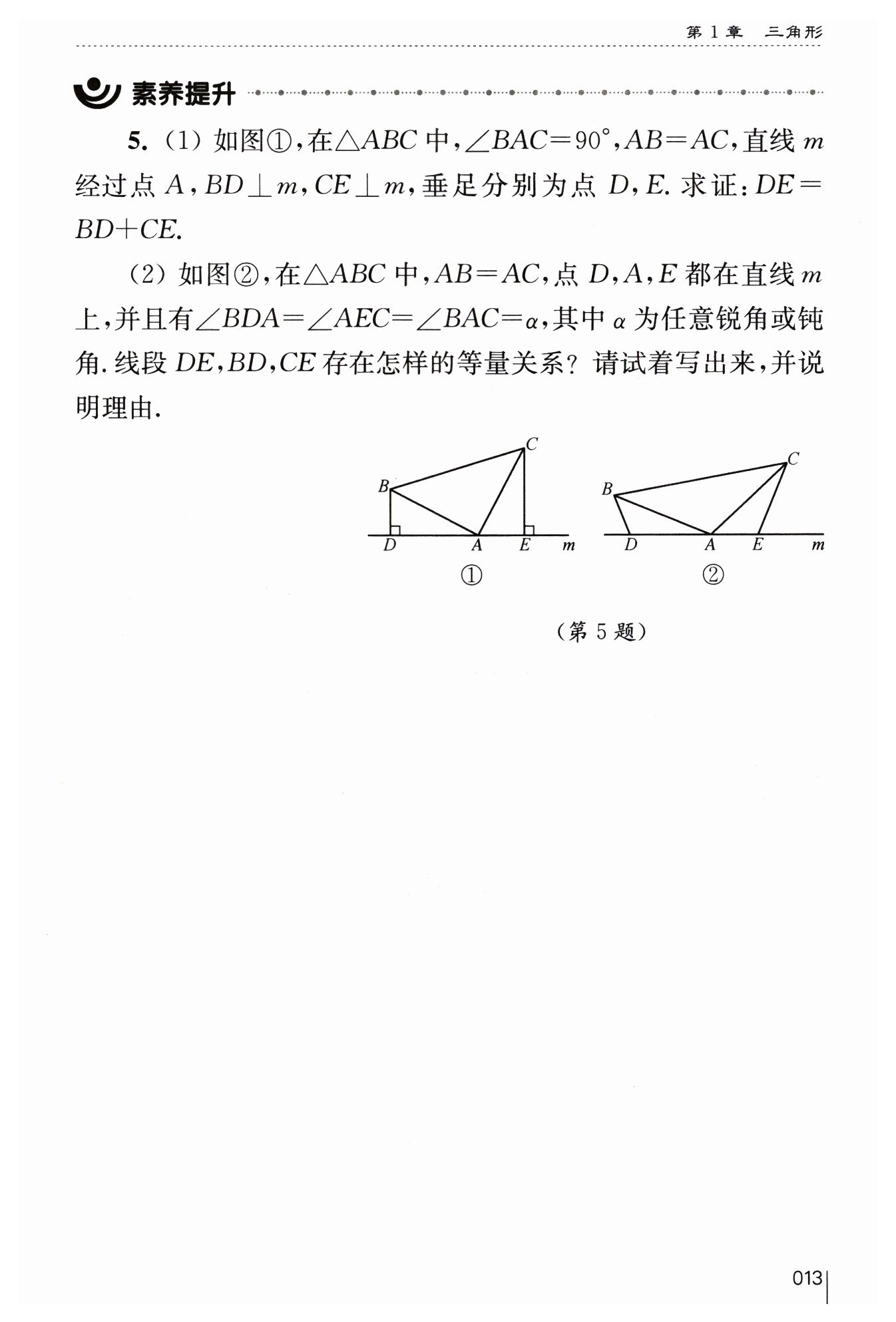 ?$ (1)$?證明:∵?$BD\perp m,$??$CE\perp m,$?∴?$∠BDA=∠AEC = 90°$?