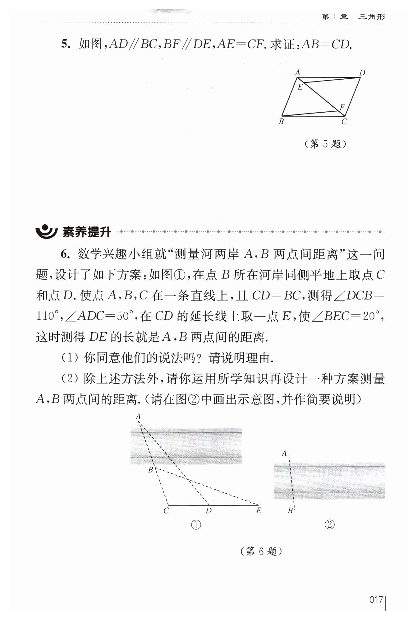 證明:∵?$AD// BC,$?∴?$∠DAE=∠BCF$?