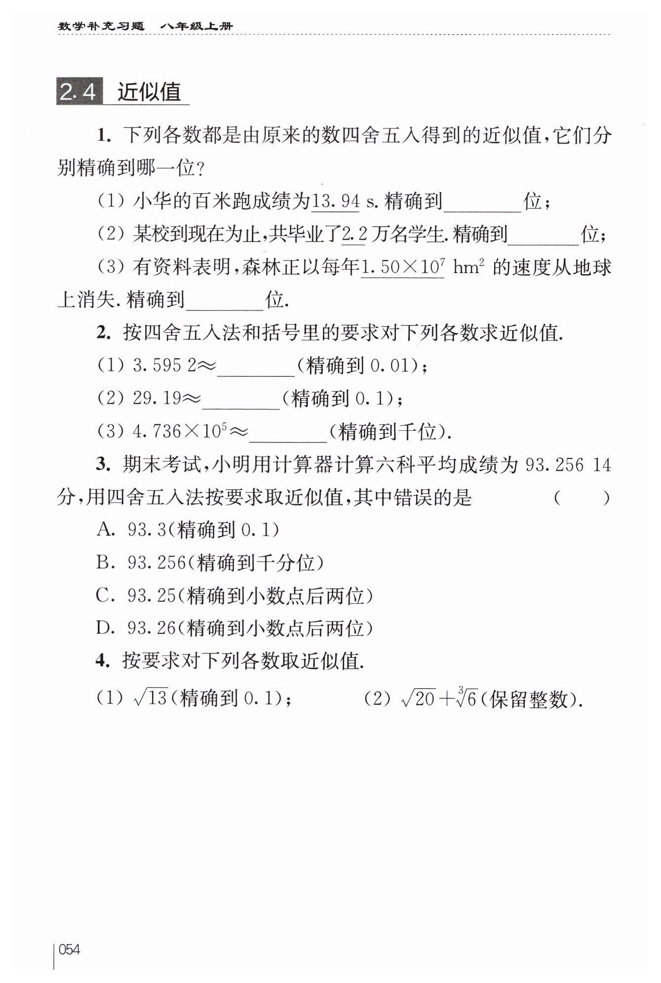 解:$\sqrt{20}+\sqrt[3]{6}\approx4.47 + 1.82=6.29\approx6$(保留整數(shù))