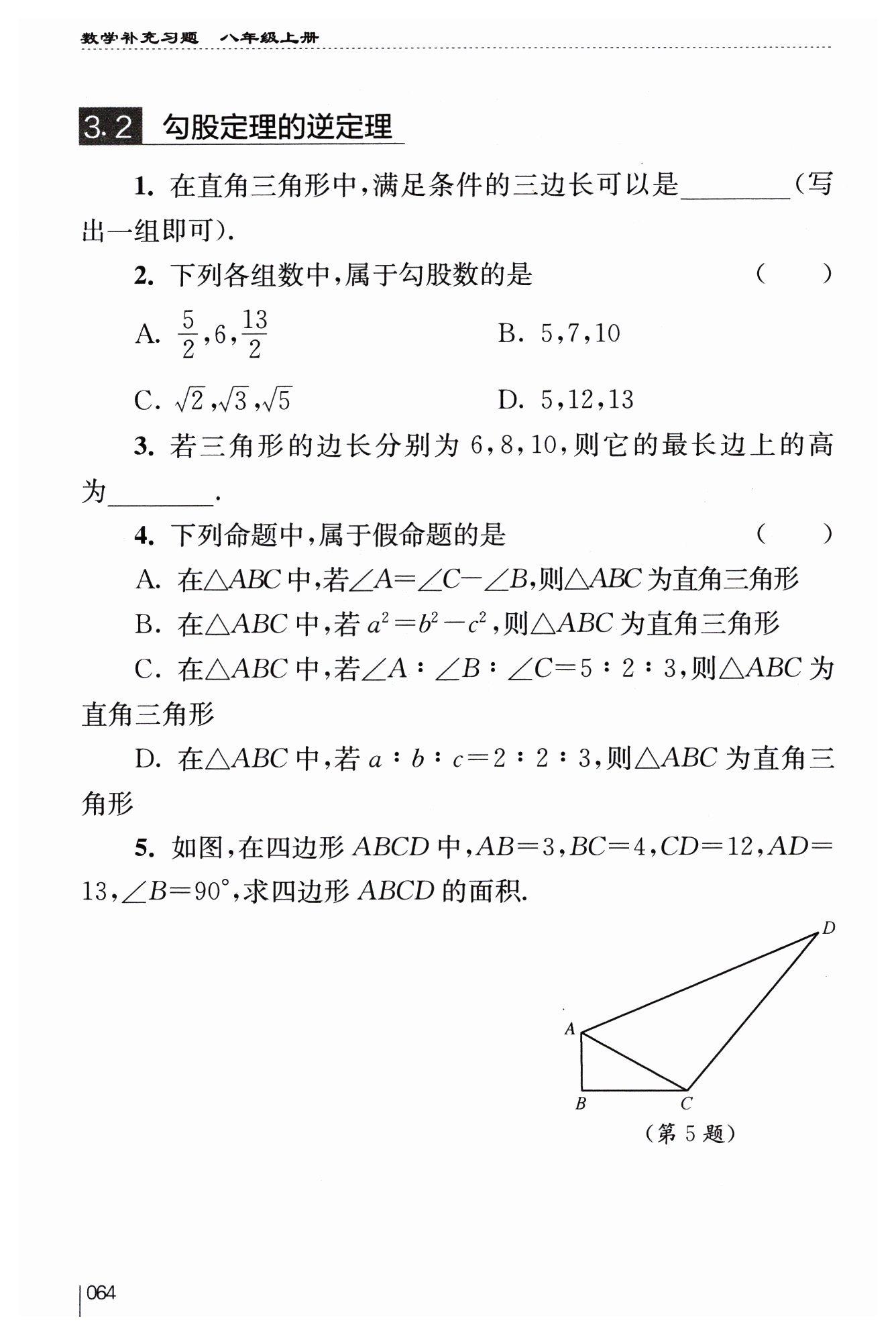 ∵?$AC^2+CD^2=25+12^2= 169,$??$AD^2=13^2=169$?
