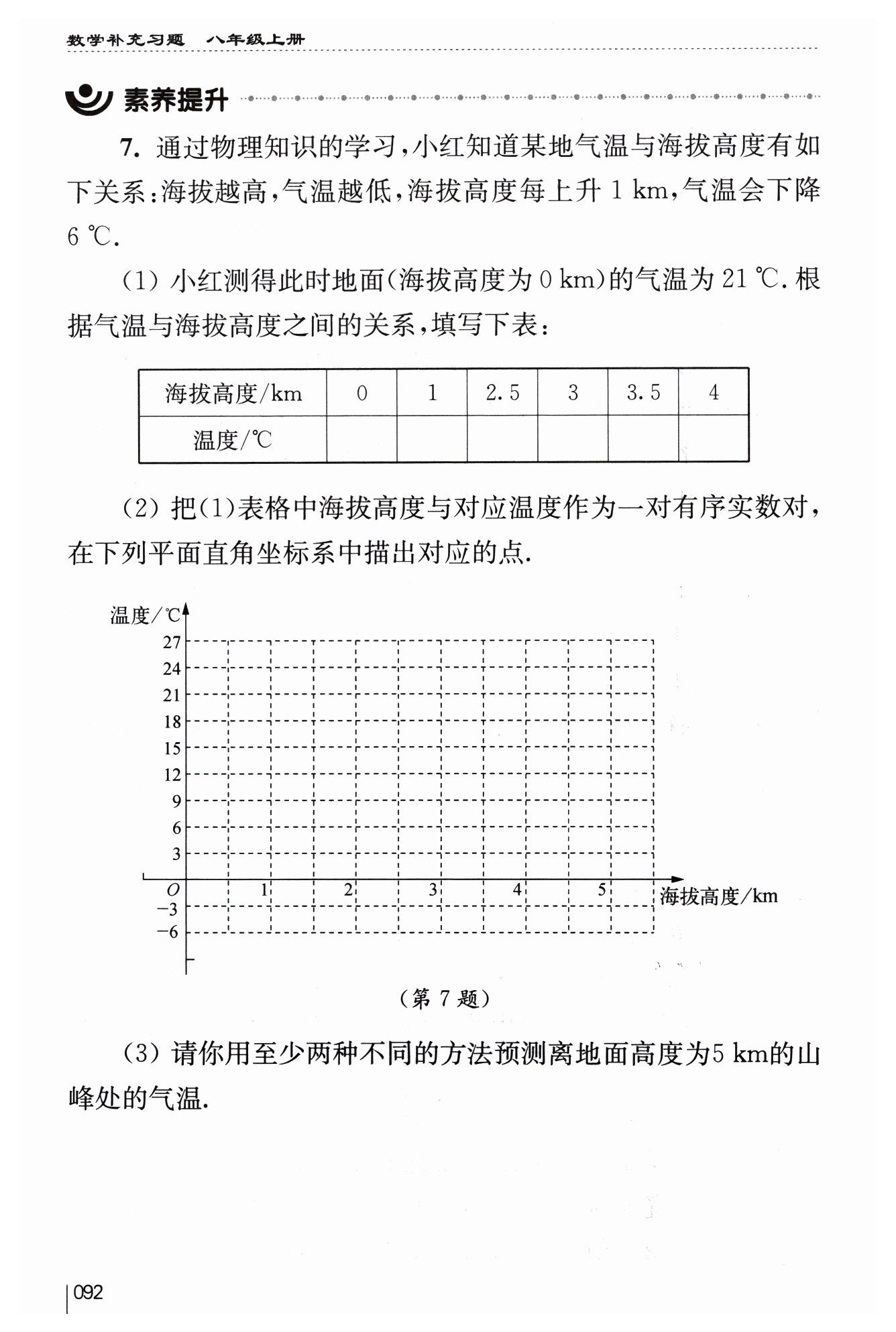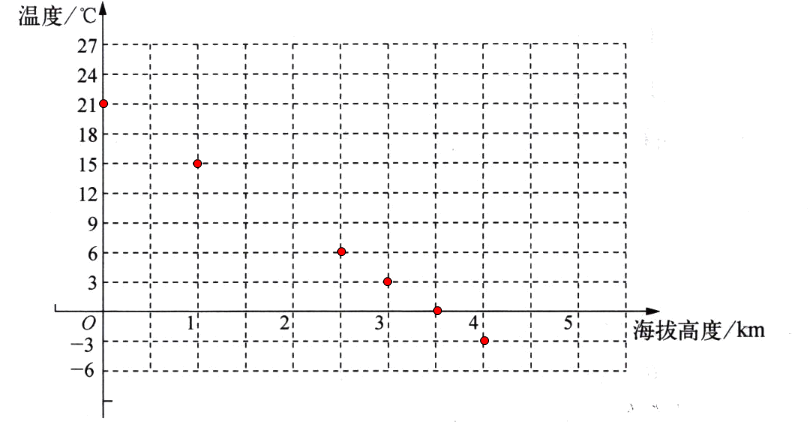 方法二:由表格數據可知,海拔每升高?$1\ \mathrm {km }$?溫度降低?$6℃,$?