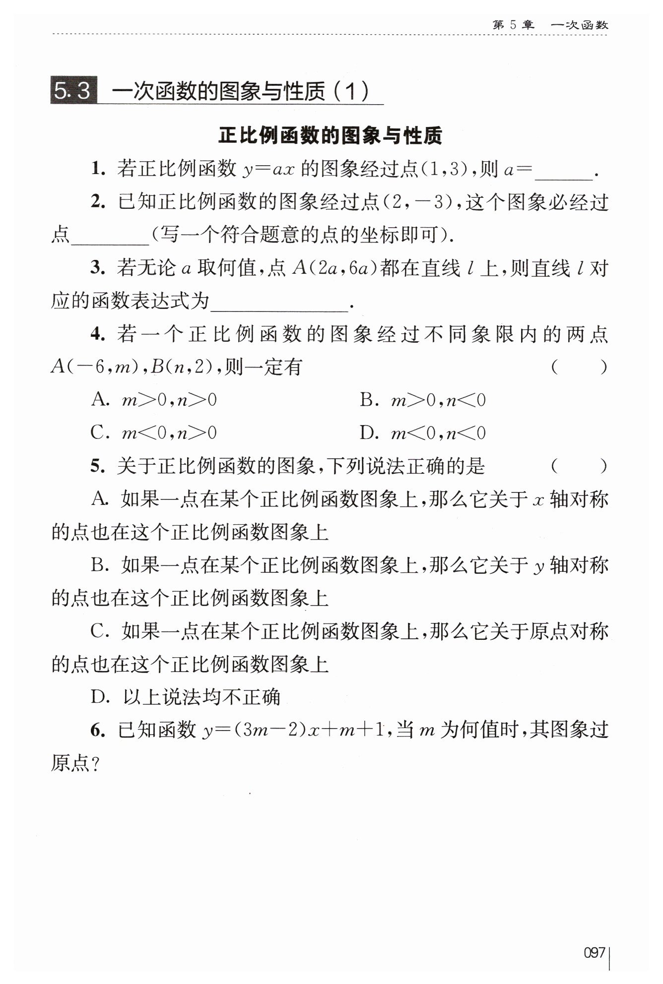 ?$ $?將?$(0,$??$0)$?代入函數(shù)可得:?$0=(3\ \mathrm {m} - 2)×0 + m + 1$?