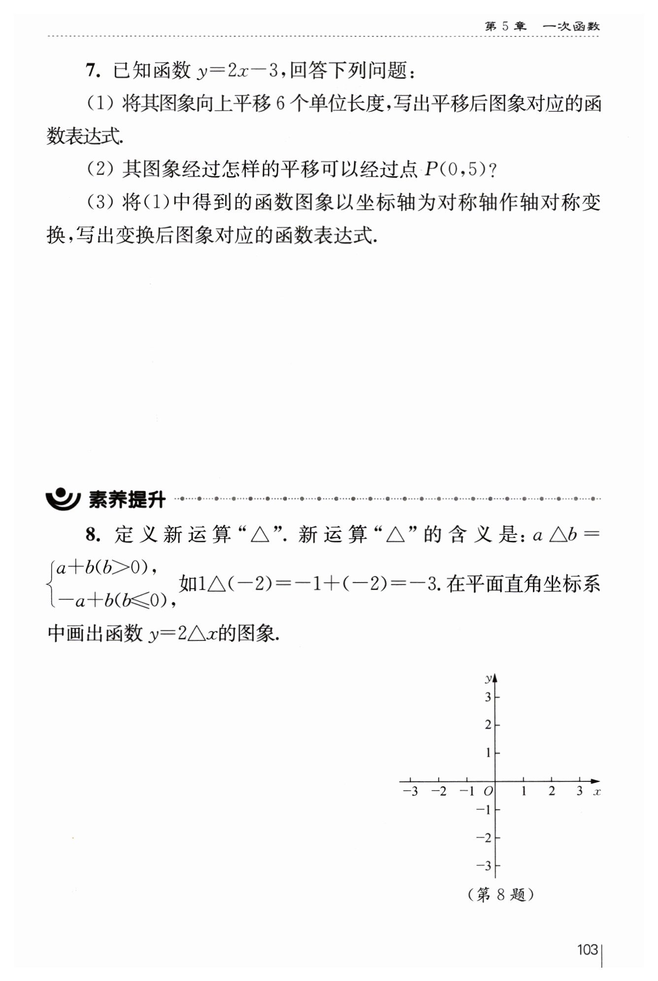 ∴所得直線對應(yīng)的函數(shù)表達式為?$y = 2x - 3 + 6 = 2x + 3$?