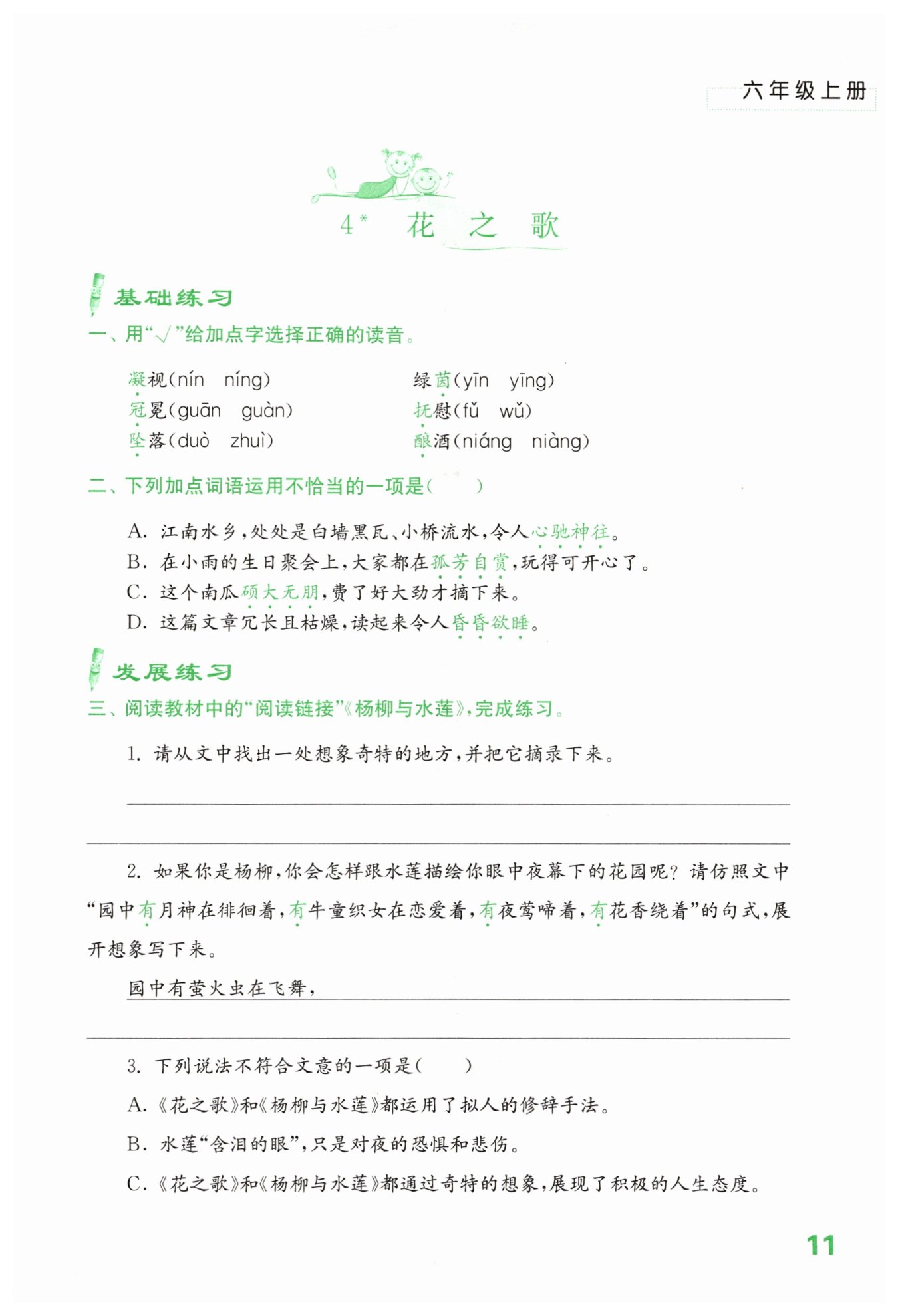 示例:“太陽起來了,你睡醒了嗎?你花苞似的眼里為什么含了清淚?”