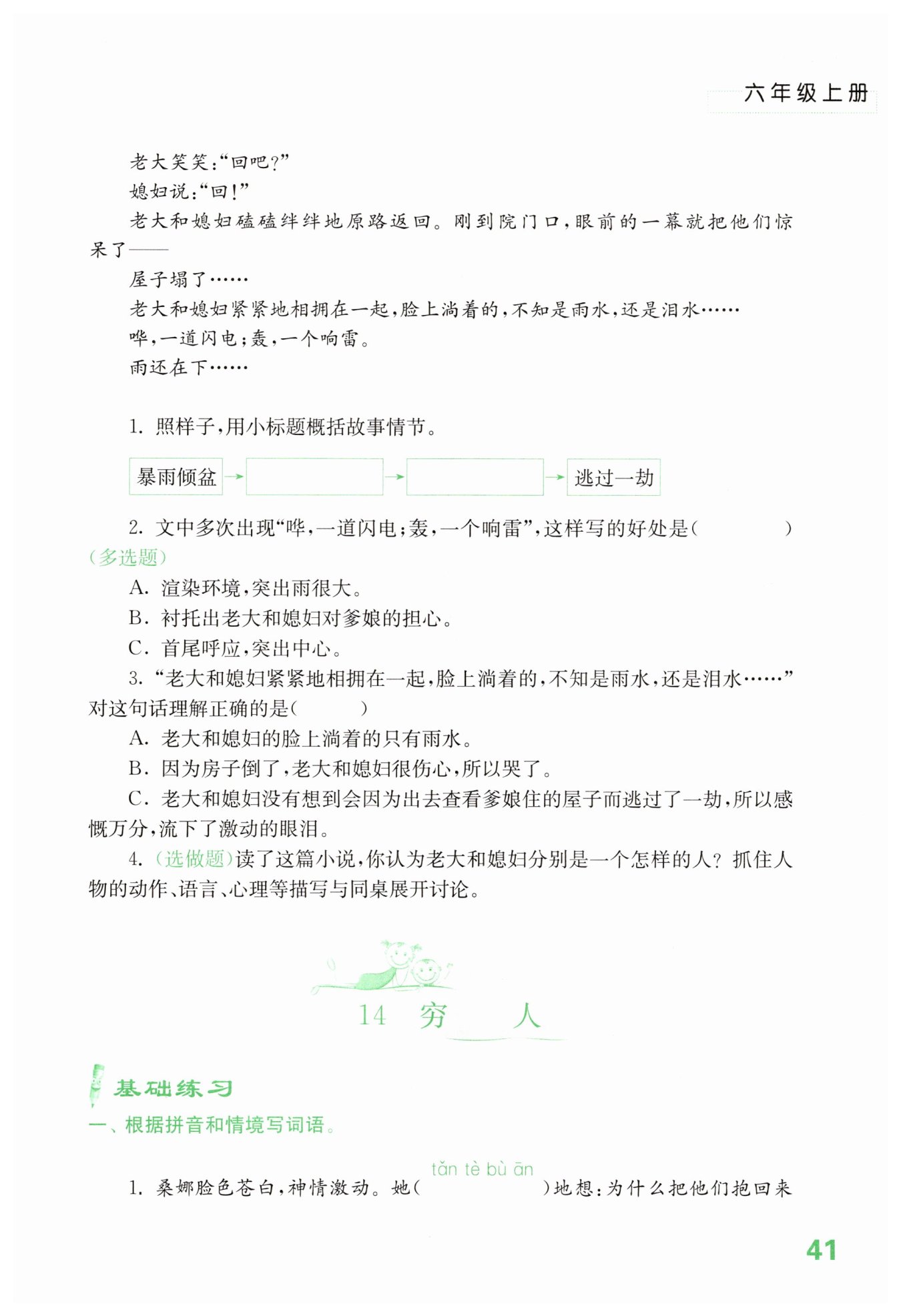 切的話,可以感受到媳婦的賢惠與通情達(dá)理。從“老大不放心,屋前屋后轉(zhuǎn)了個(gè)