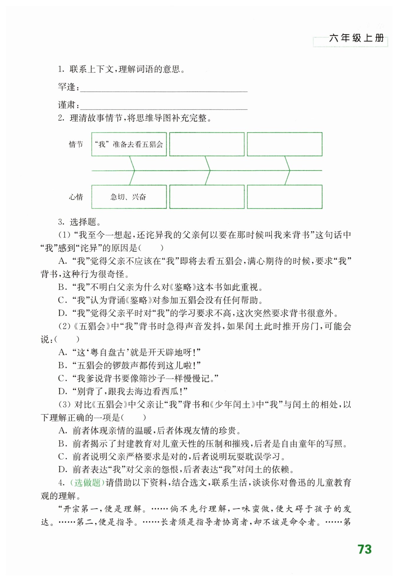 “我” 背完書去看五猖會(huì)