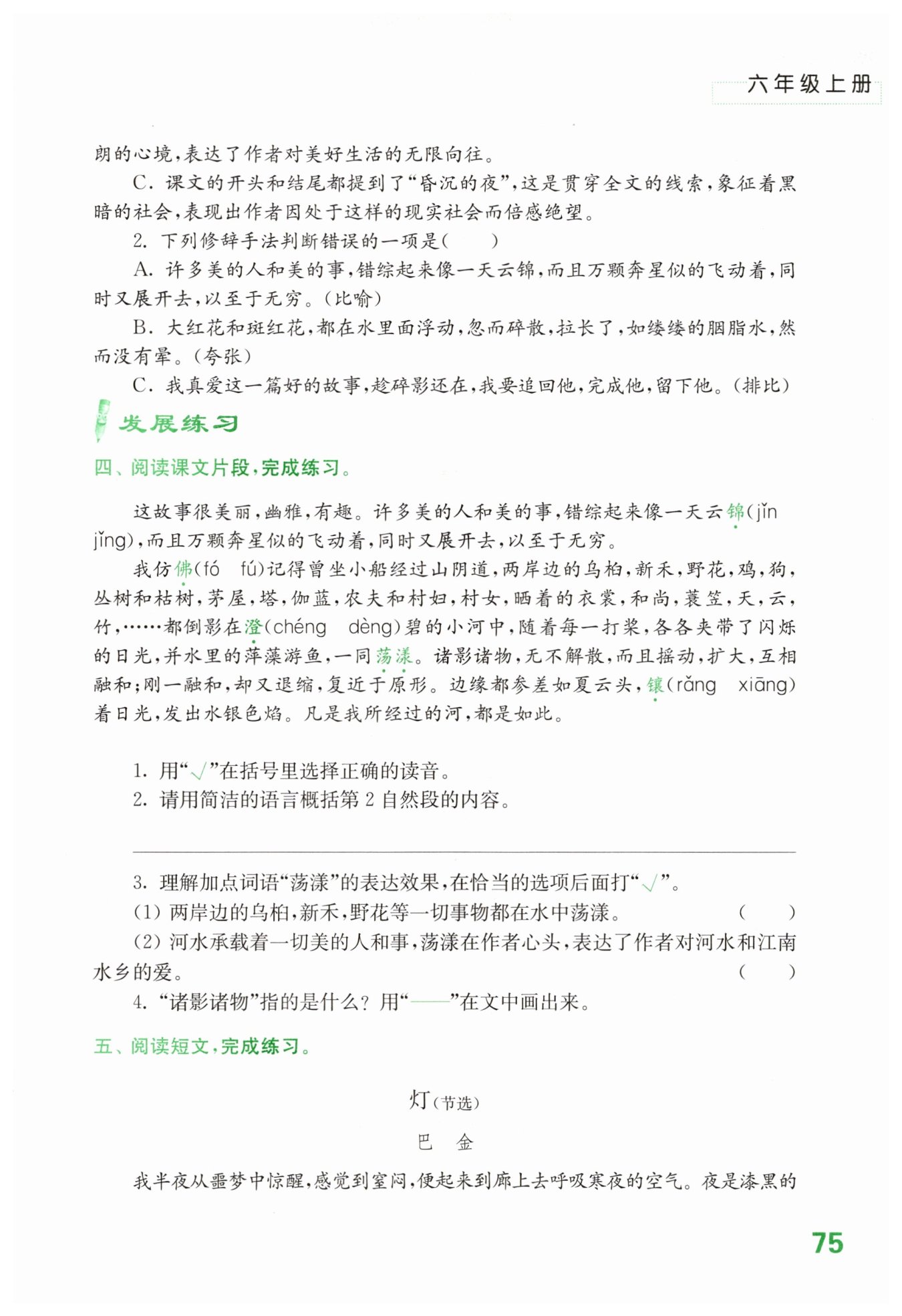 “我”夢(mèng)見兒時(shí)家鄉(xiāng)的美景在河水中的倒影。