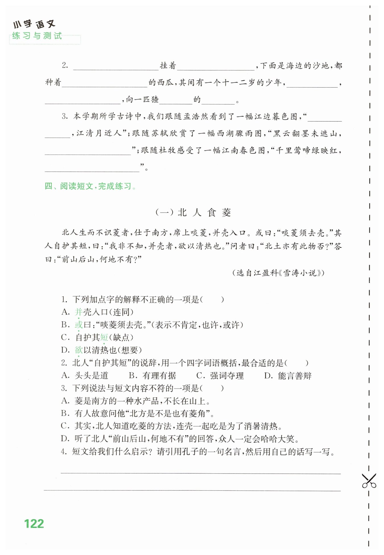 示例:短文告訴我們,“知之為知之,不知為不知”,不能不懂裝懂,強詞奪