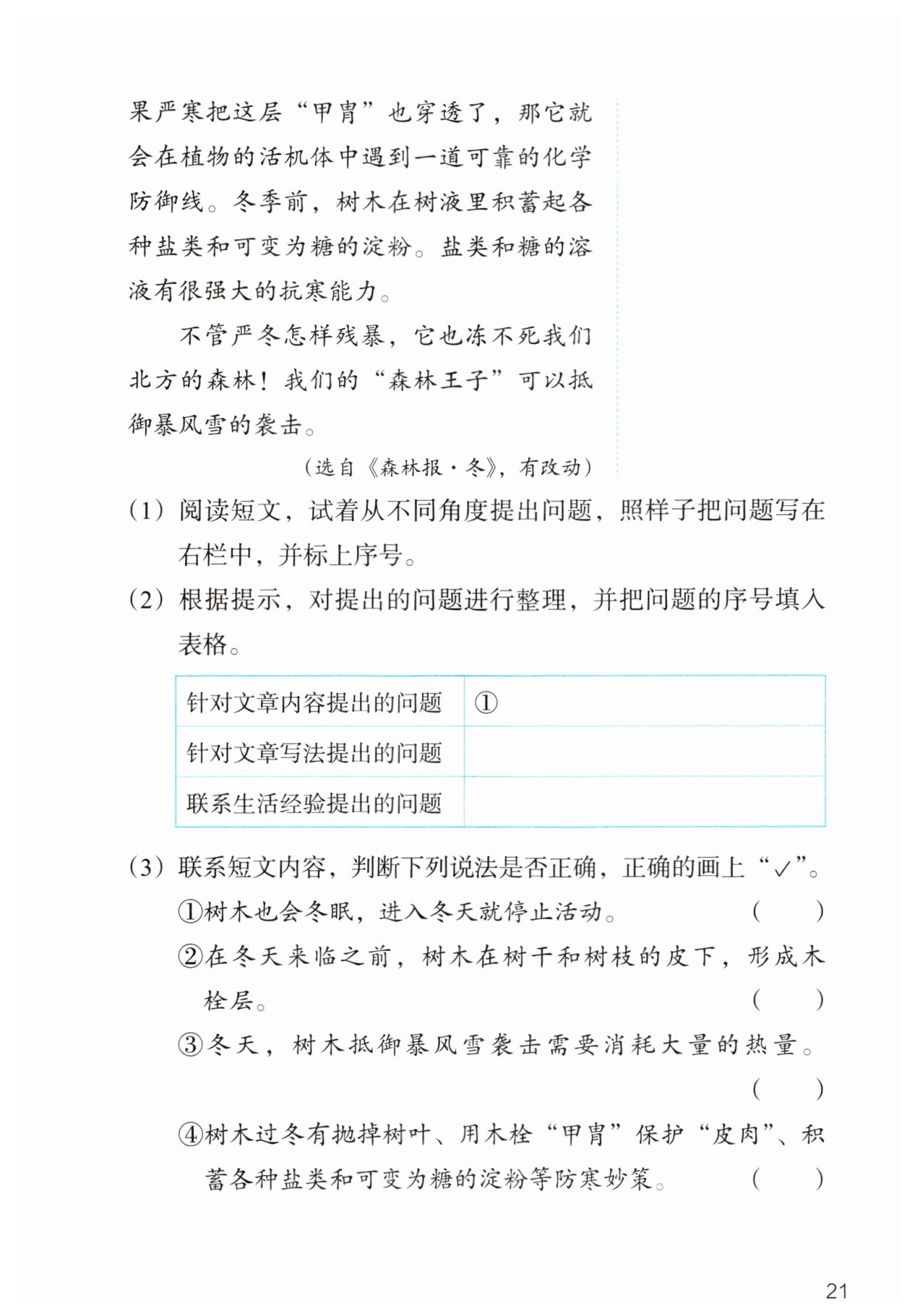 ⑤對于樹木過冬的問