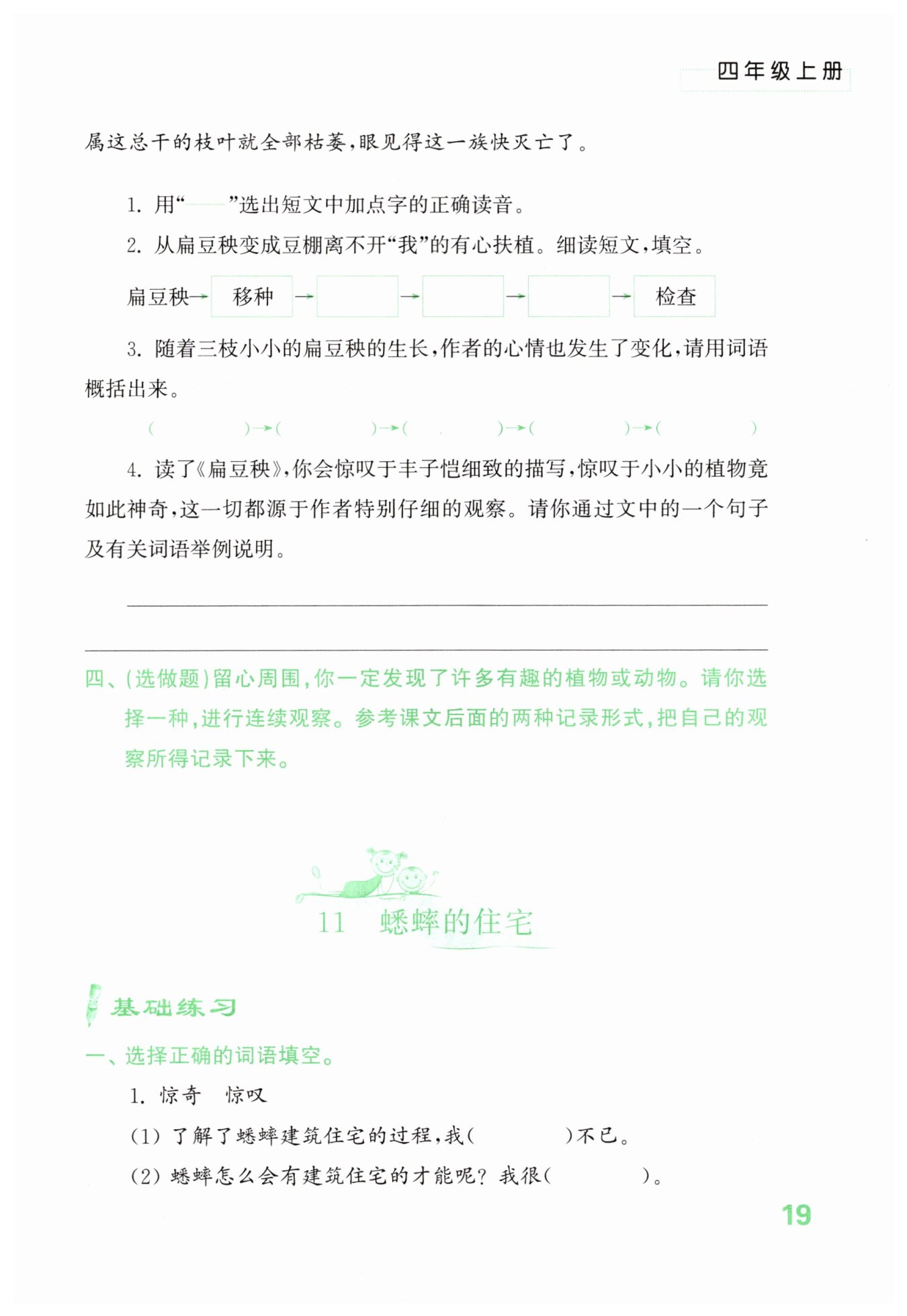 這句話中“好像一個觸手”“具有可驚的攀緣力”等詞語,生動形象地寫出了扁豆秧的蔓生長時的狀態(tài)和特點,體現(xiàn)了豐子愷細致的觀察和細膩的描寫。