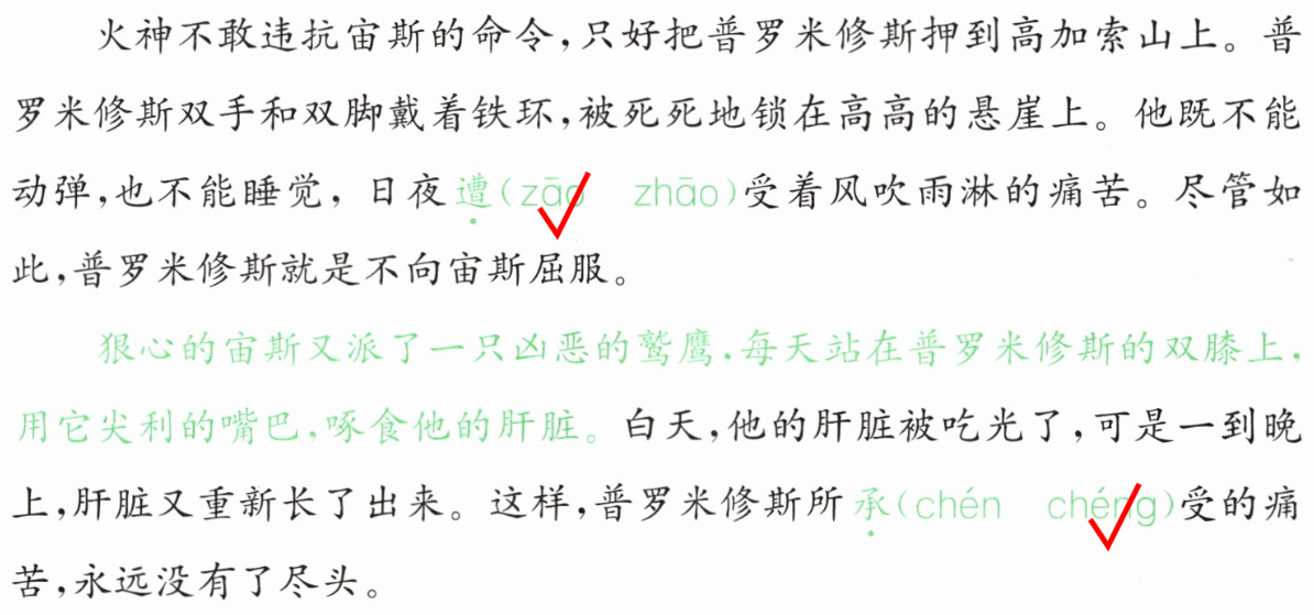 這兩段話主要寫普羅米修斯不屈服于冷酷無情的宙斯,承受著