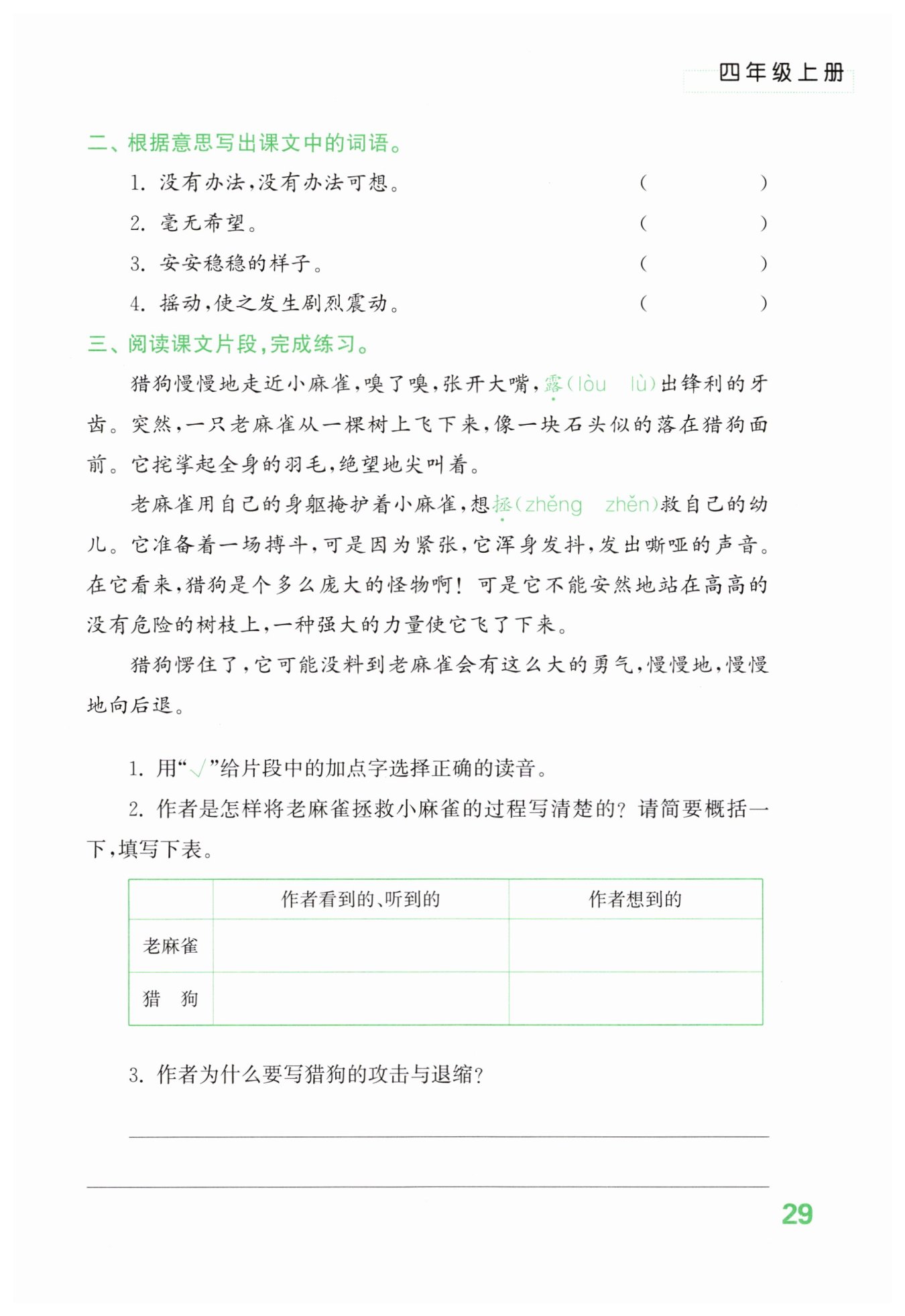 描寫獵狗的攻擊和退縮是為了將它與老麻雀的弱小形成鮮明對