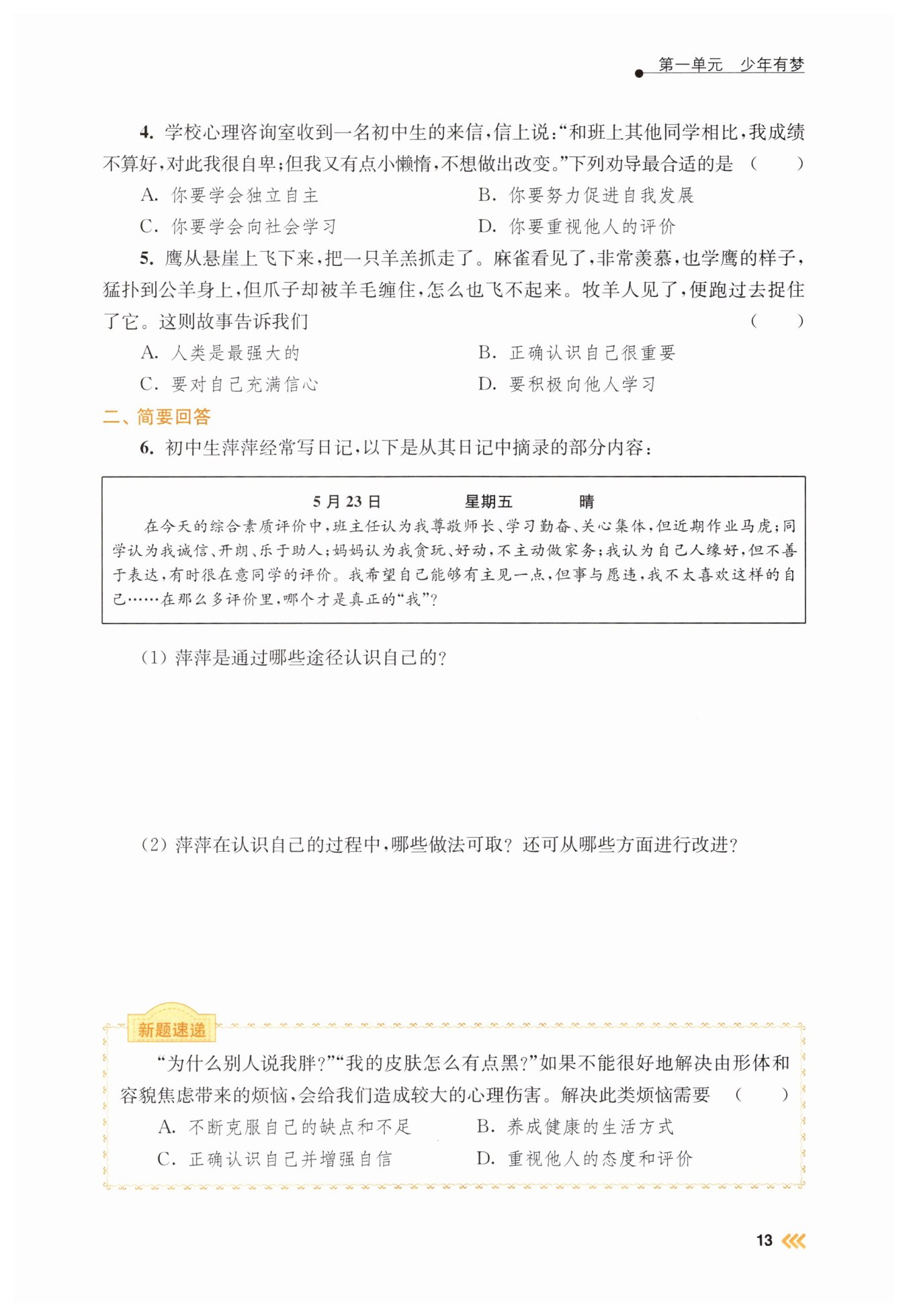 自己的評(píng)價(jià)進(jìn)行仔細(xì)分析,有選擇地接受。②她應(yīng)全面認(rèn)識(shí)自己,