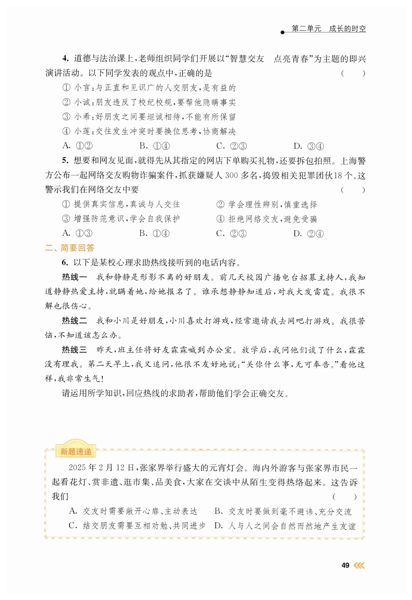 關(guān)心朋友的同時(shí)也應(yīng)尊重朋友,把握好與朋友交往的界限和分寸,