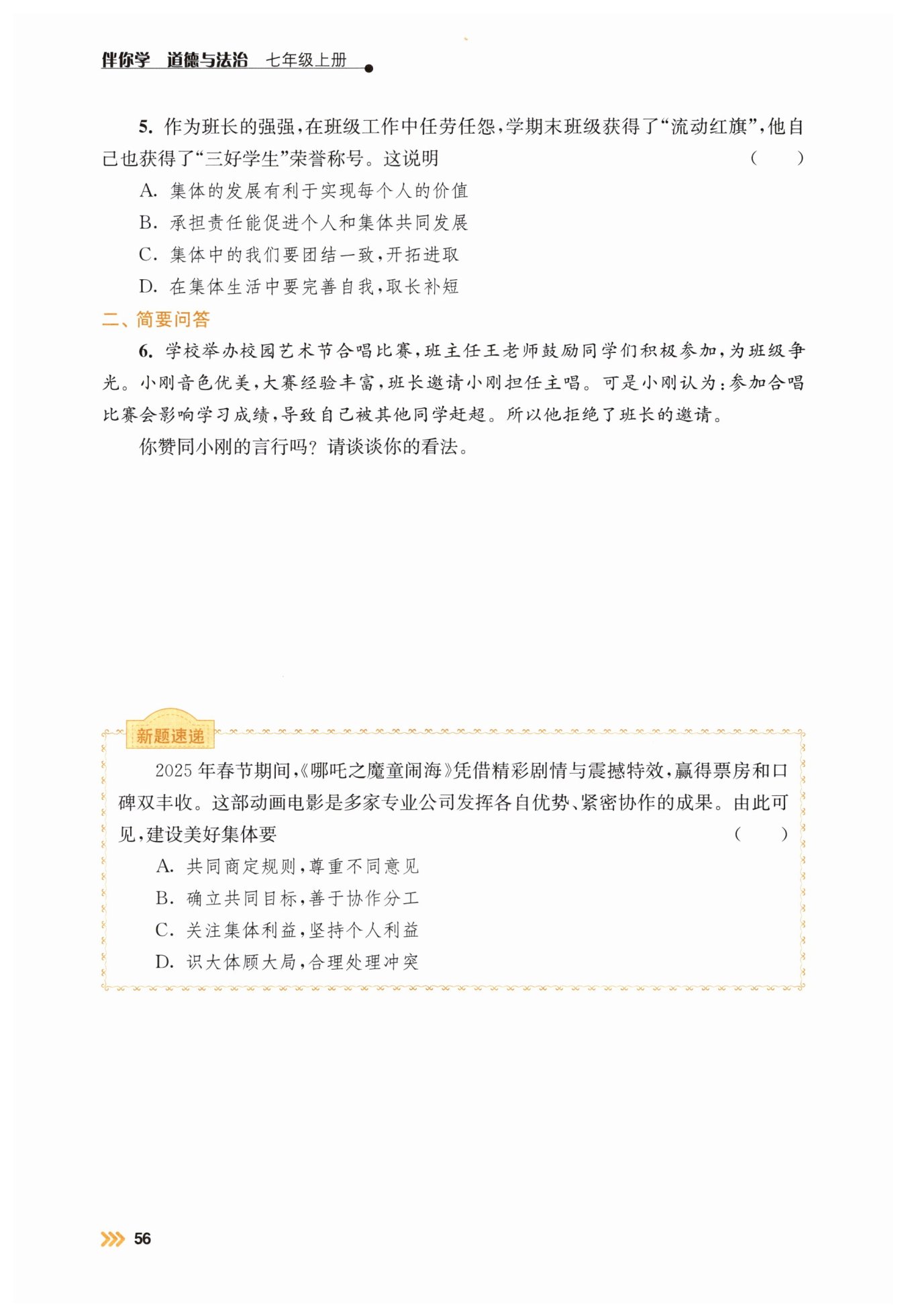 生沖突時,應把集體利益放在個人利益之上。③建設美好集體,