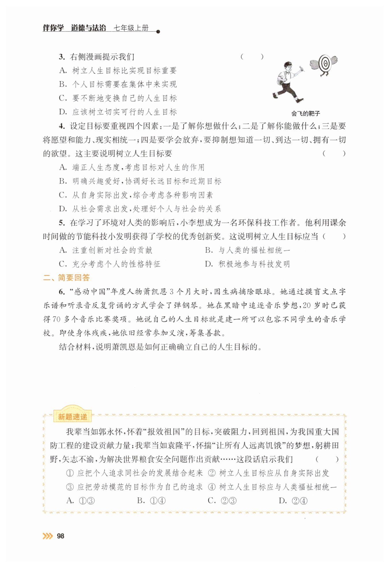 ①蕭凱恩從自身實(shí)際出發(fā),樹(shù)立了切實(shí)可行的人生目標(biāo),通過(guò)摸盲文點(diǎn)