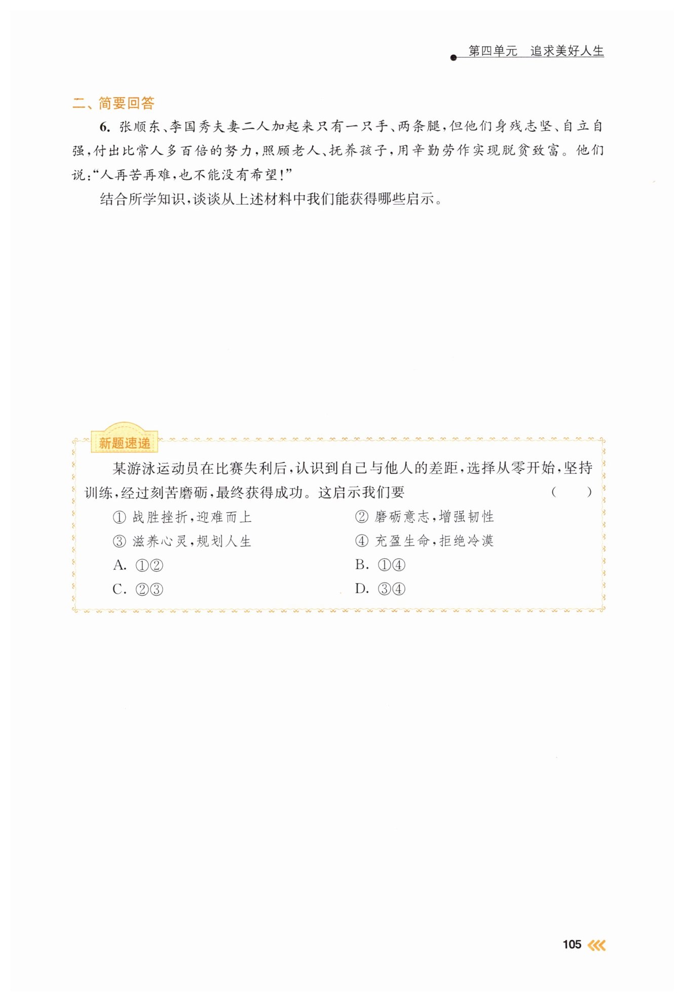 及時調(diào)整心態(tài),不畏懼,不退縮,勇敢面對。②我們要勤奮進