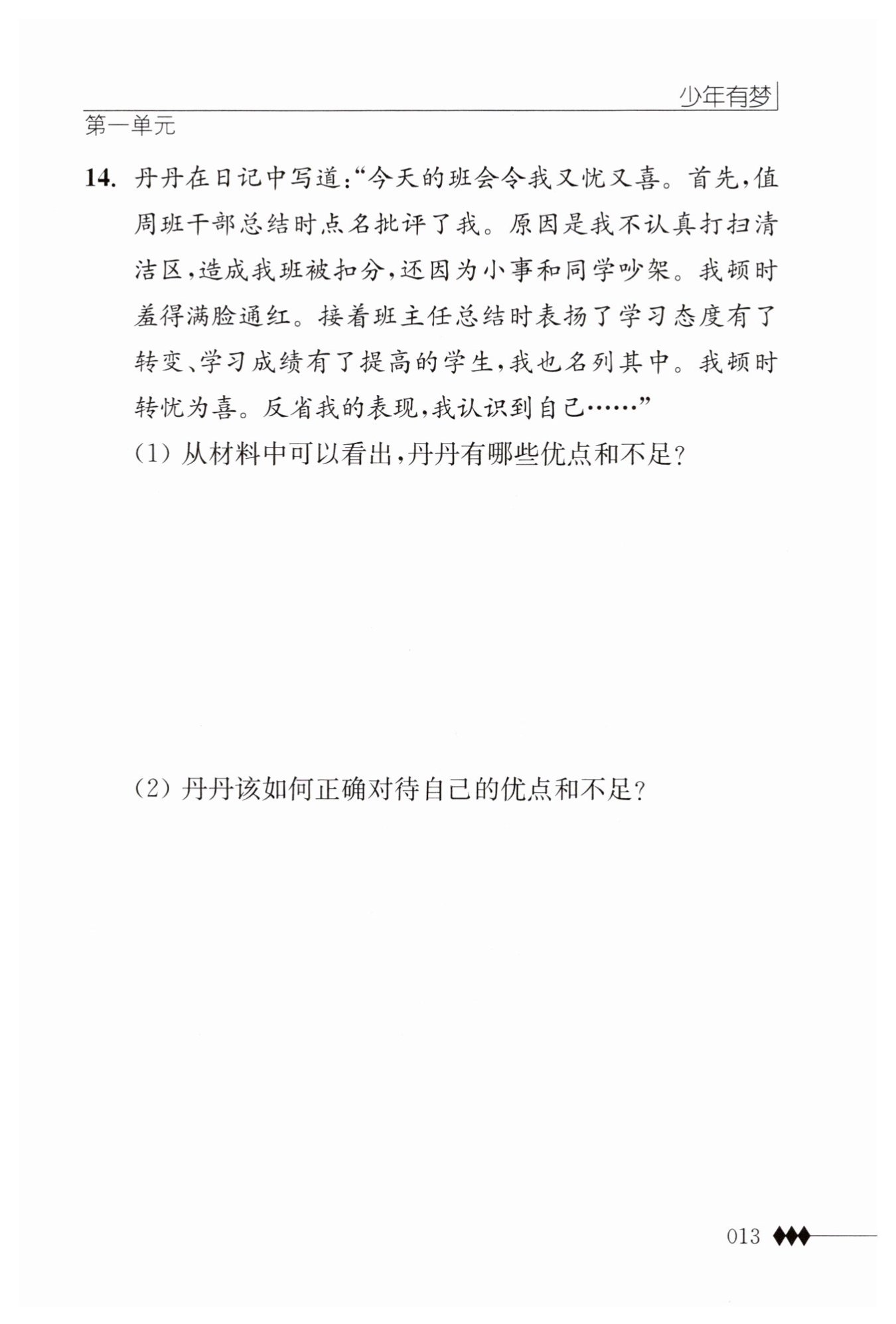 反省自己;有羞恥心。不足:不認(rèn)真打掃清潔區(qū)衛(wèi)生,