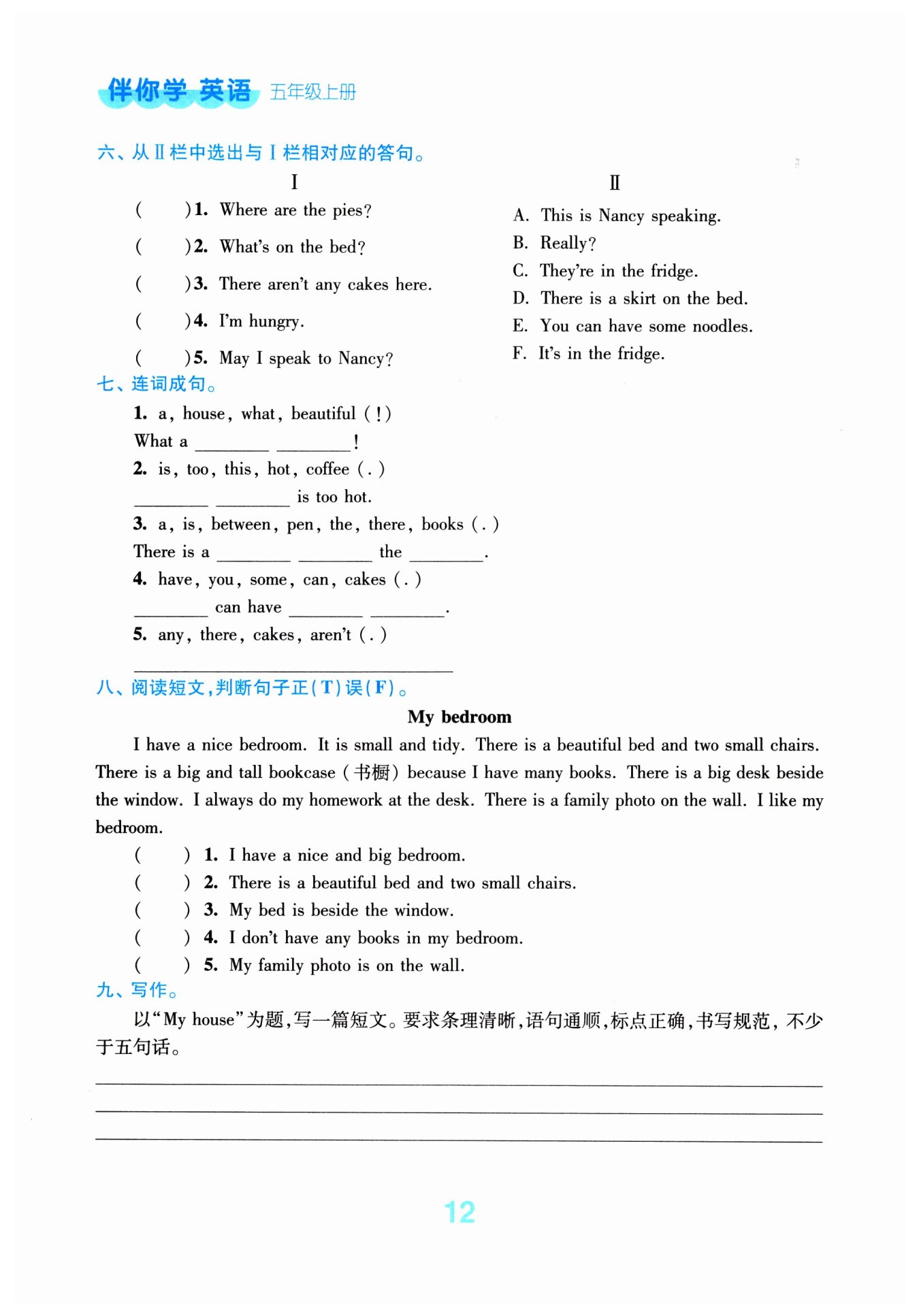 I have a big and nice house. There are three bedrooms in it. My bedroom is small