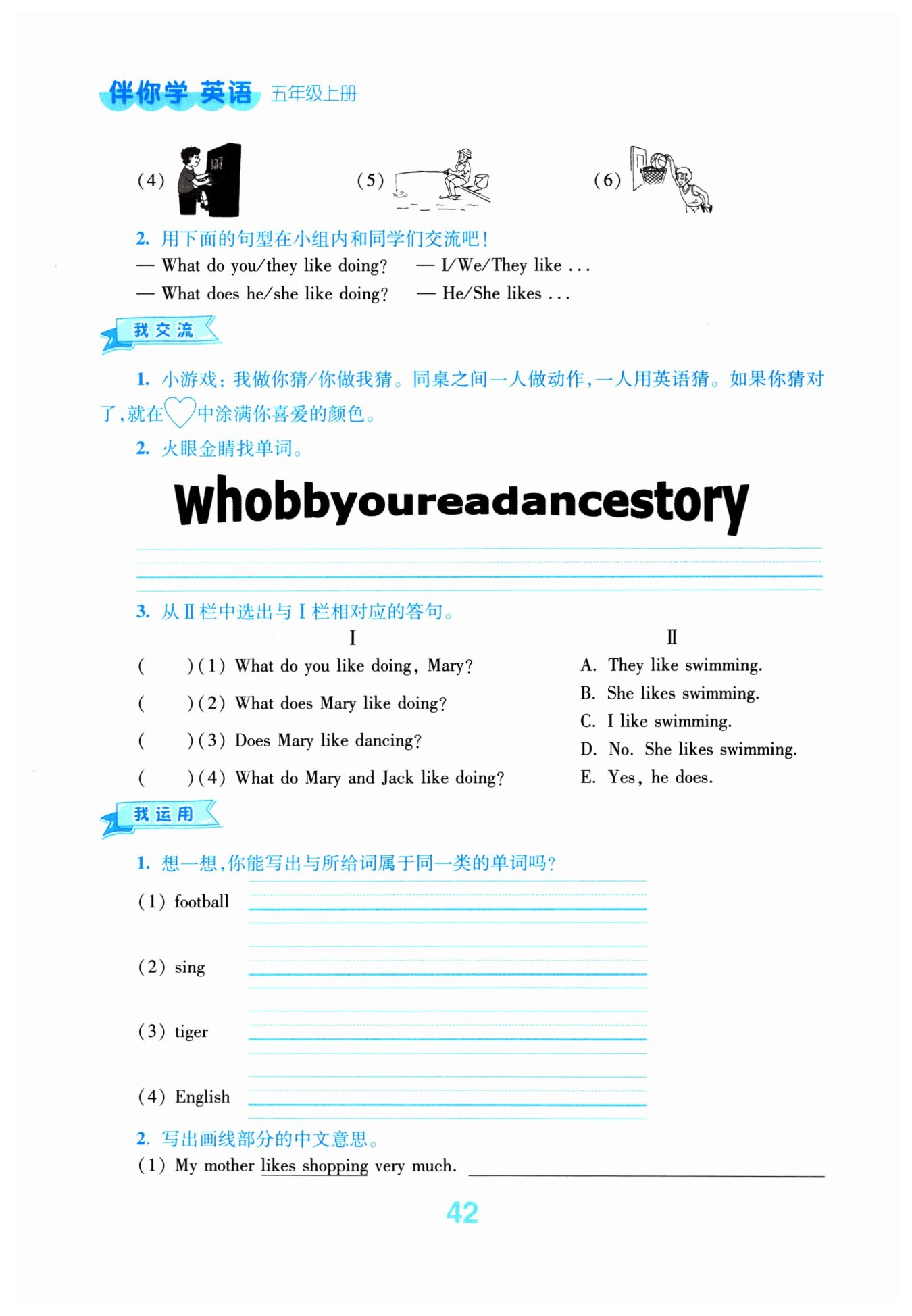 (4)He likes playing the piano.(5)He likes fishing.(6)He likes playing basketball.