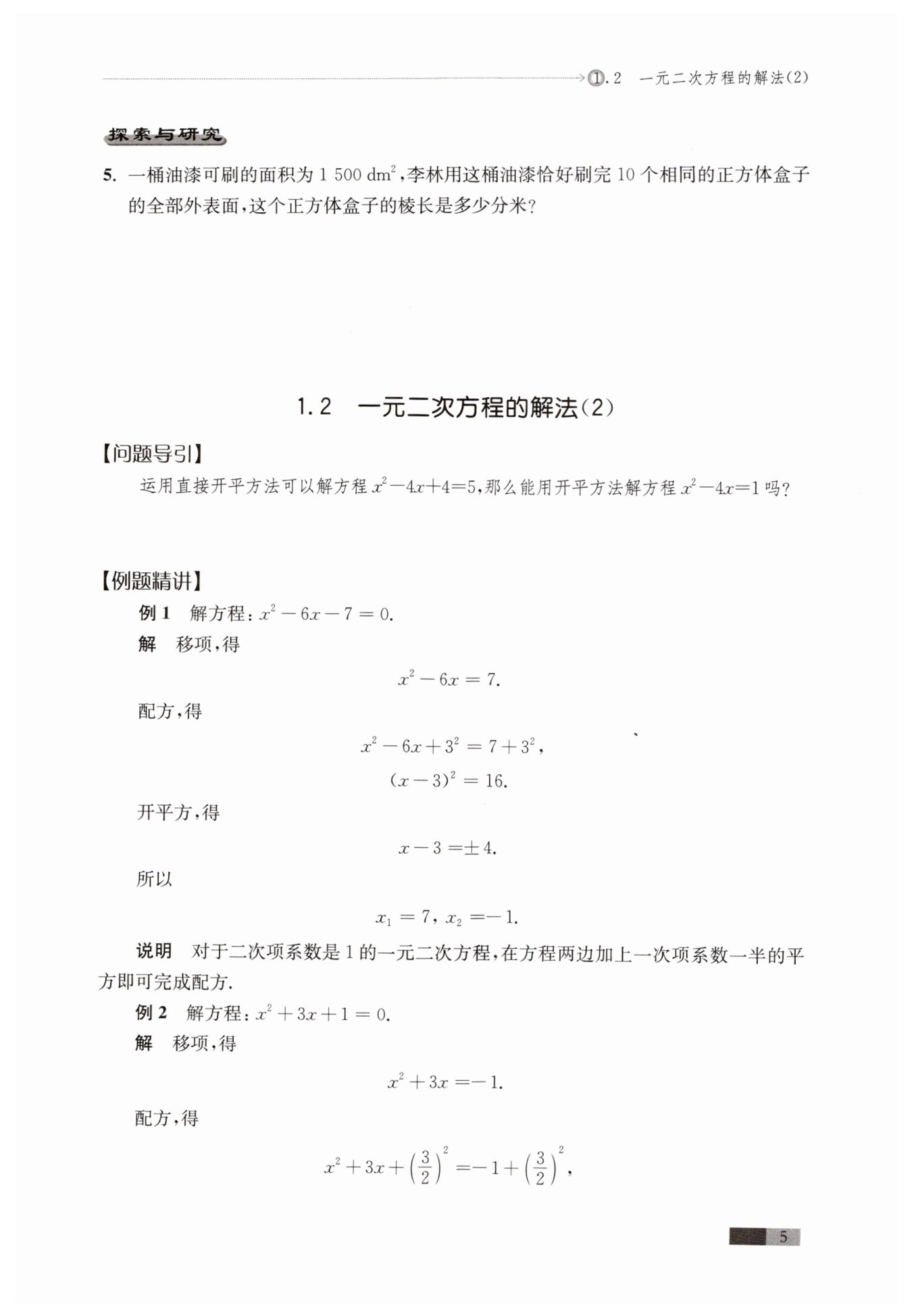?$ $?將方程兩邊同時加?$4,$?變成?$ x^2-4x+4=5$?