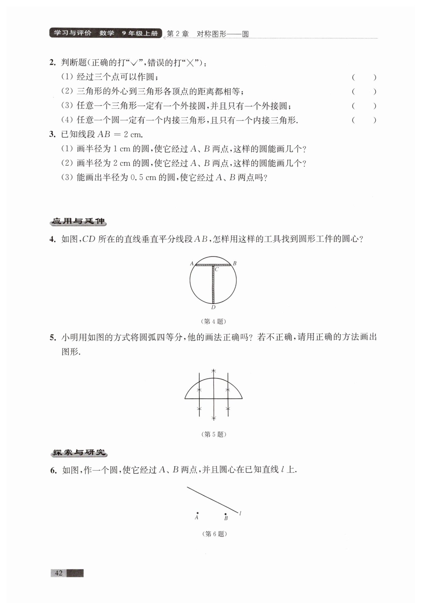 解?$:$?因?yàn)辄c(diǎn)?$A、$??$B$?在圓上,所以圓心必與點(diǎn)?$A、$??$B $?的距離相等?$,$?所以圓心在?$CD$?所在的直線上。