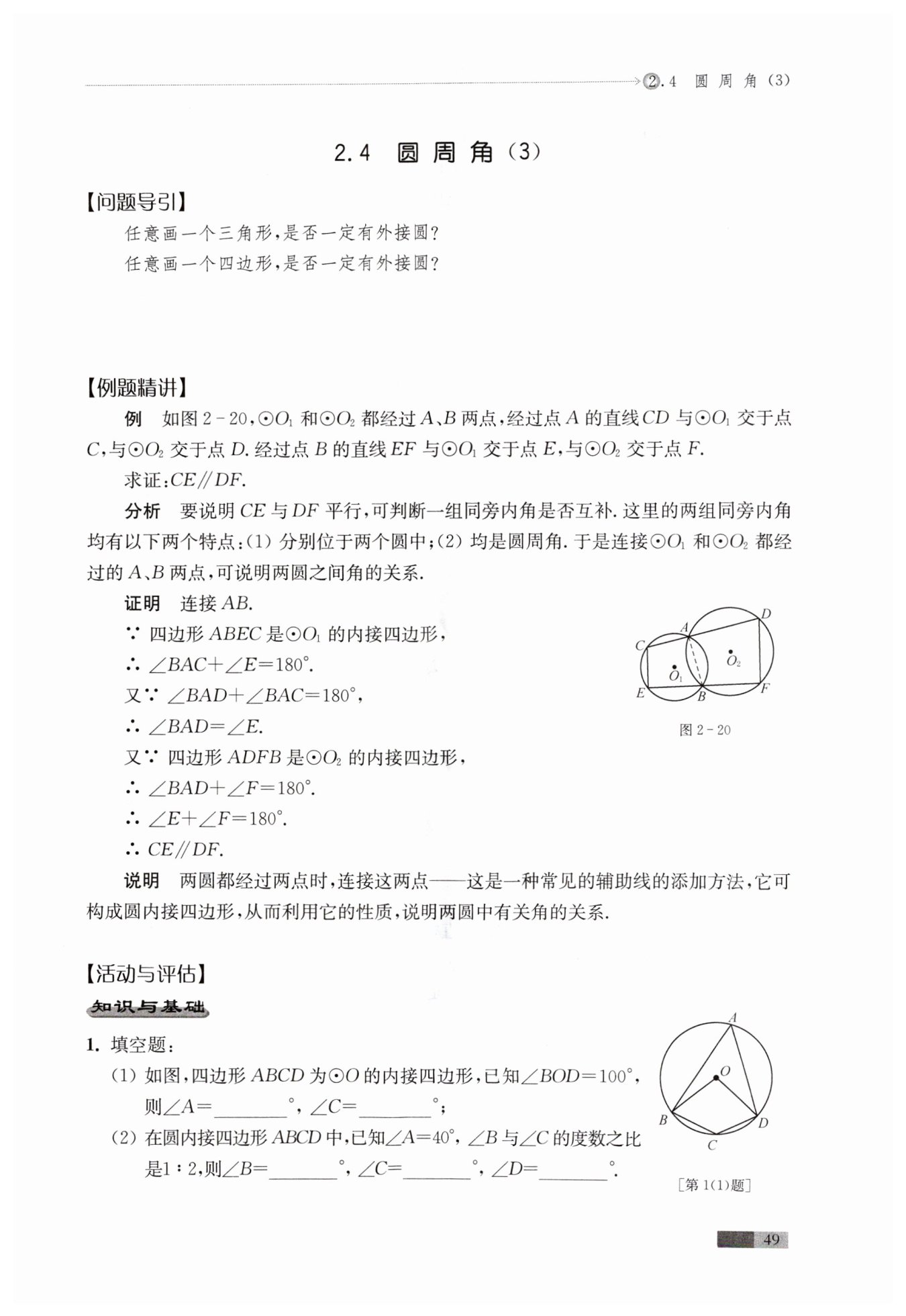 解:任意畫一個(gè)三角形一定有外接圓,任意畫一個(gè)四邊形不一定有外接圓