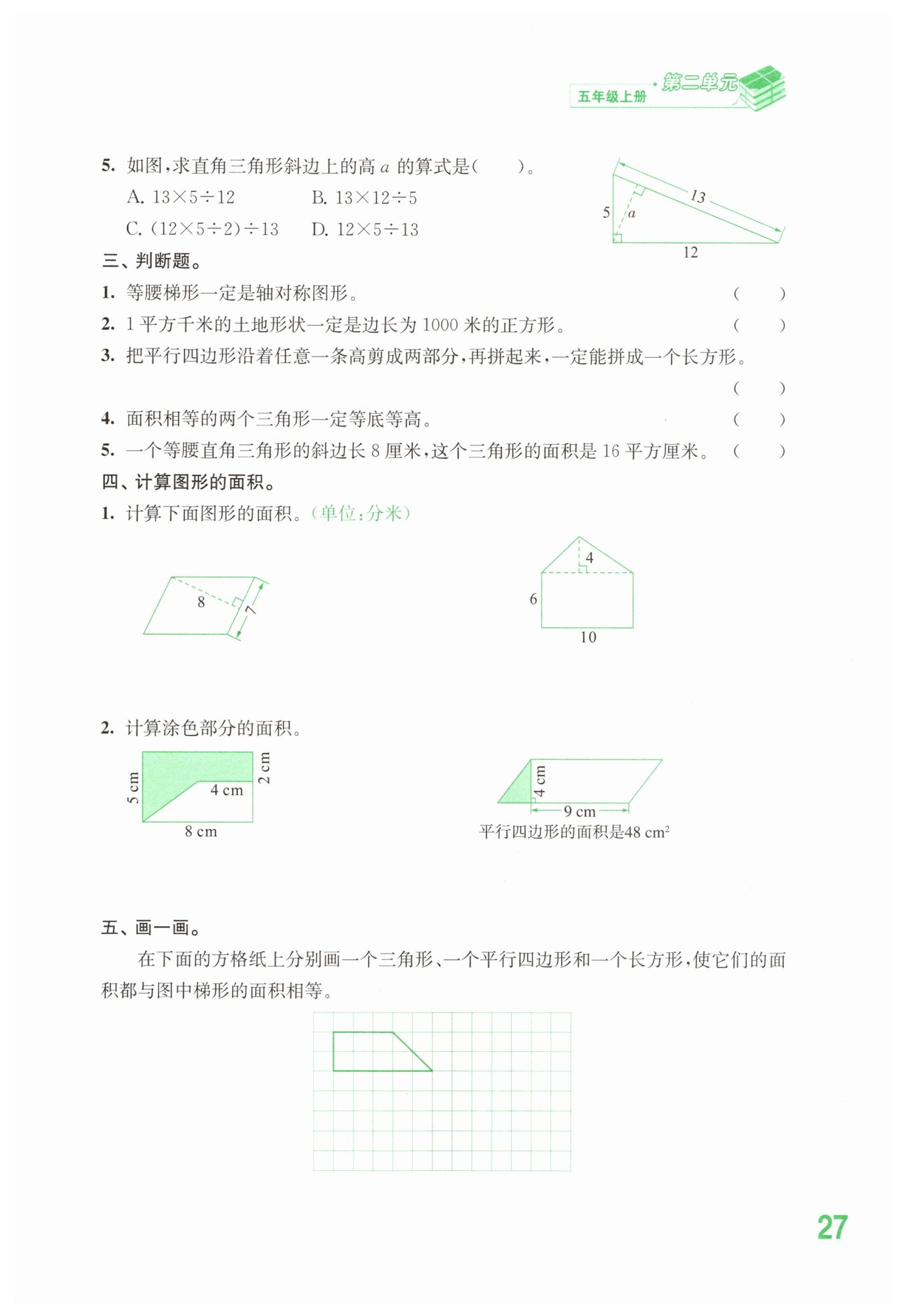 8×5-(4+8)×(5-2)÷2=22(cm2)