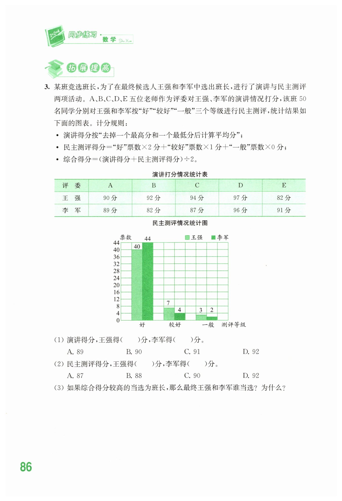 王強(qiáng)綜合得分: (92+87)÷2=89.5(分)