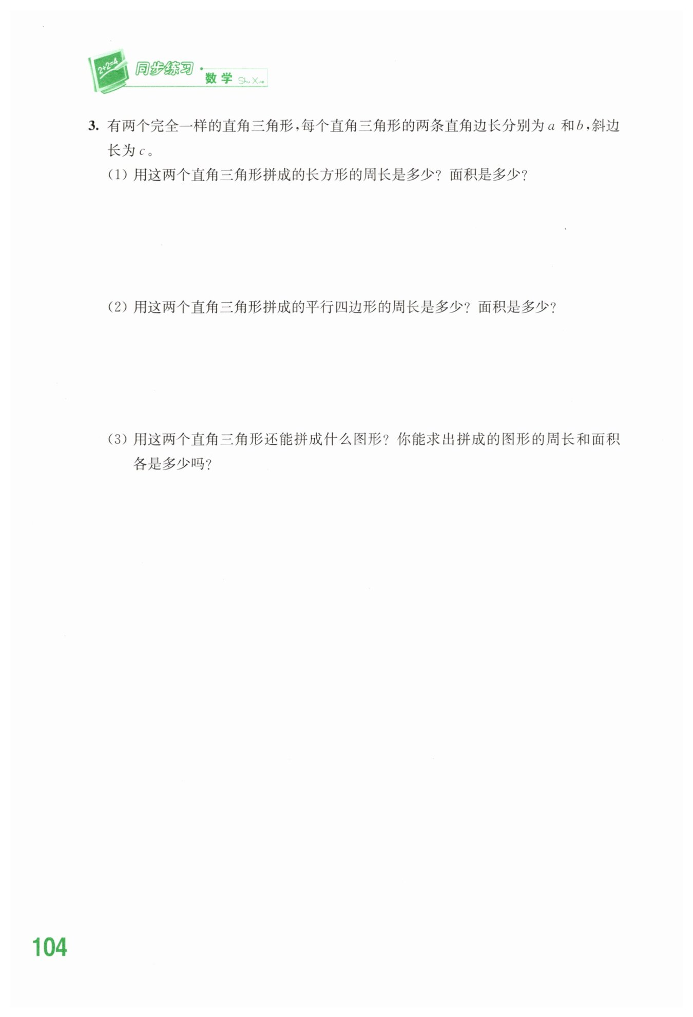 答:用這兩個(gè)直角三角形拼成的平行四邊形的周長(zhǎng)是2a+2c 或2b+2c,面積是ab。