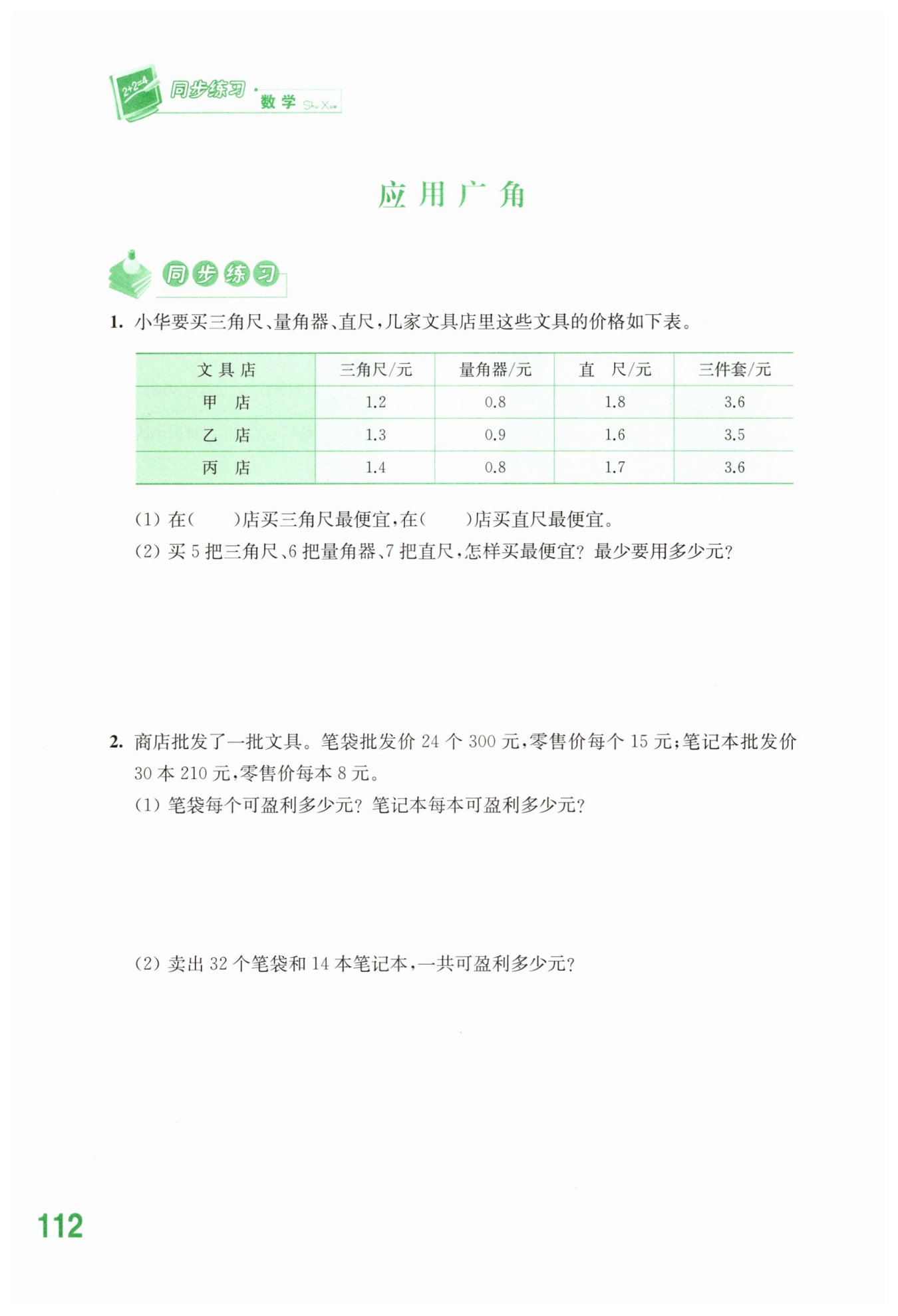 答:筆袋每個可盈利2.5元。 筆記本每本可盈利1元。