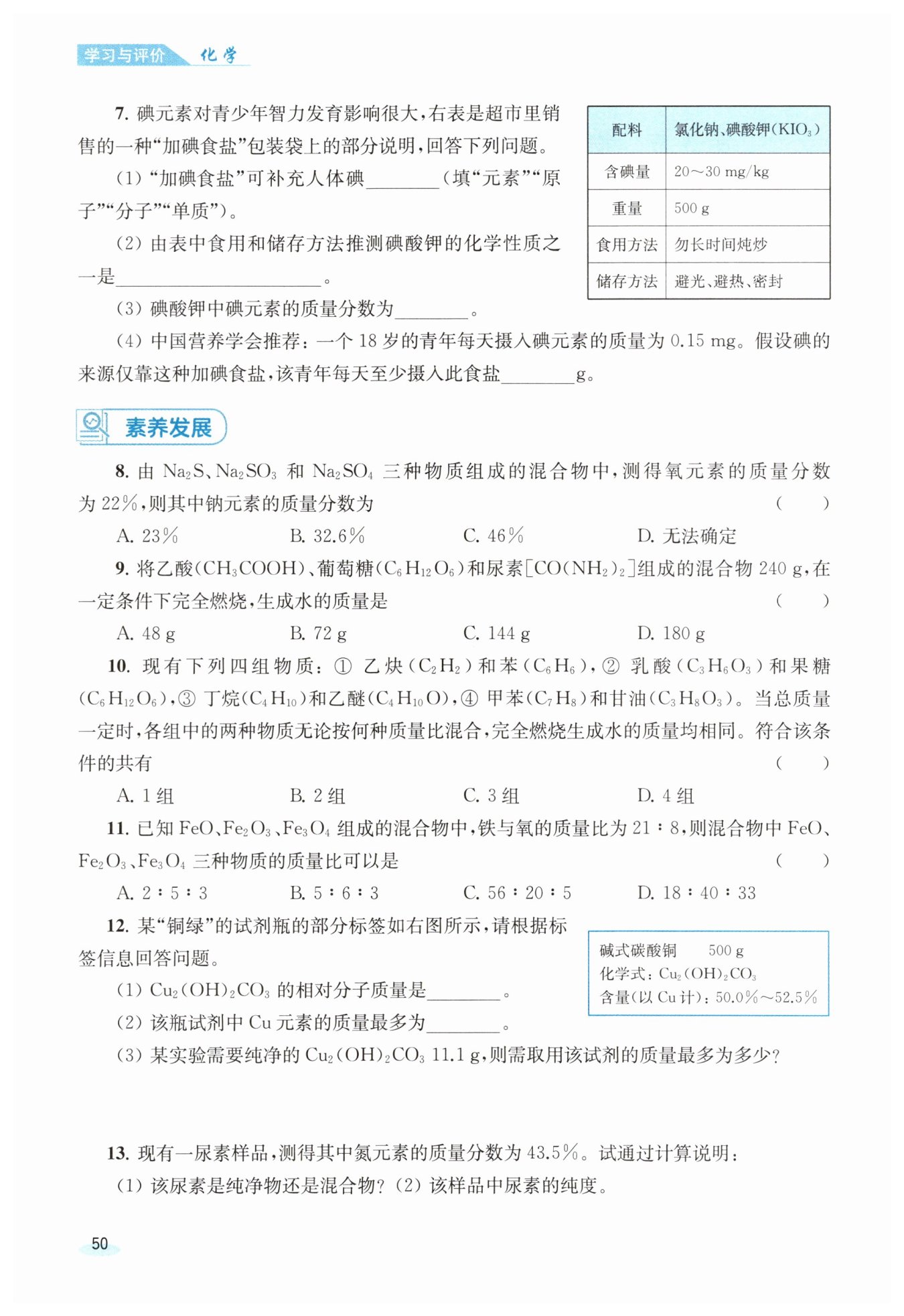 則?$x=\frac {6.4\ \mathrm {g}}{50.0\%}=12.8\ \mathrm {g}。$?