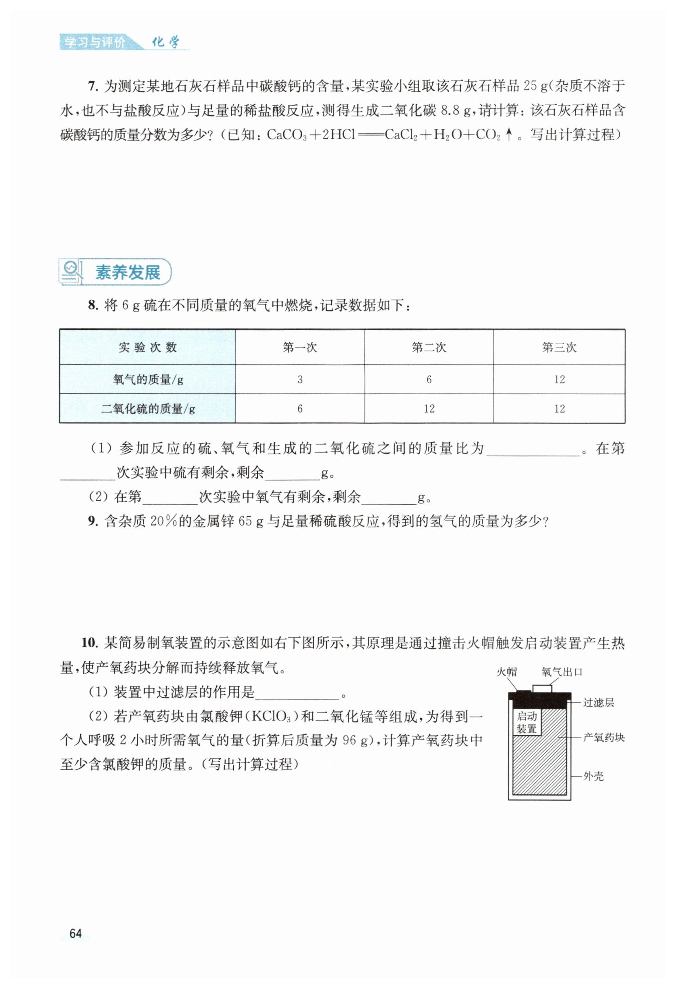 $ 樣品中碳酸鈣的質(zhì)量分?jǐn)?shù)為\frac{20\,\text{g}}{25\,\text{g}}\times100\%=80\%$