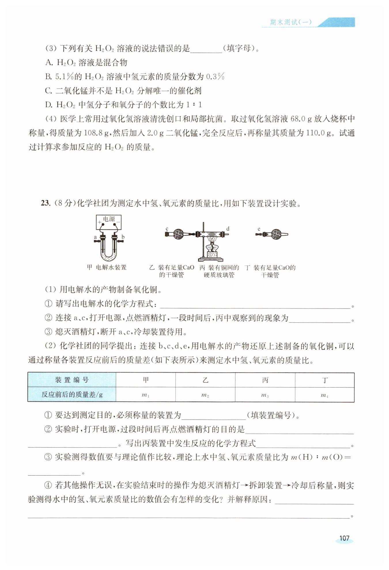 解:根據(jù)質(zhì)量守恒定律,反應(yīng)生成氧氣的質(zhì)量為?$108.8 \mathrm {g}+2.0 \mathrm {g}-110.0 \mathrm {g}=0.8 \mathrm {g}。$?