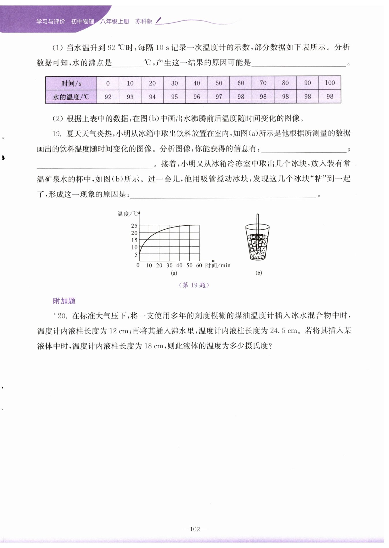 沸水溫度$t_1 = 100^{\circ}C$,液柱長(zhǎng)$L_1 = 24.5cm$。