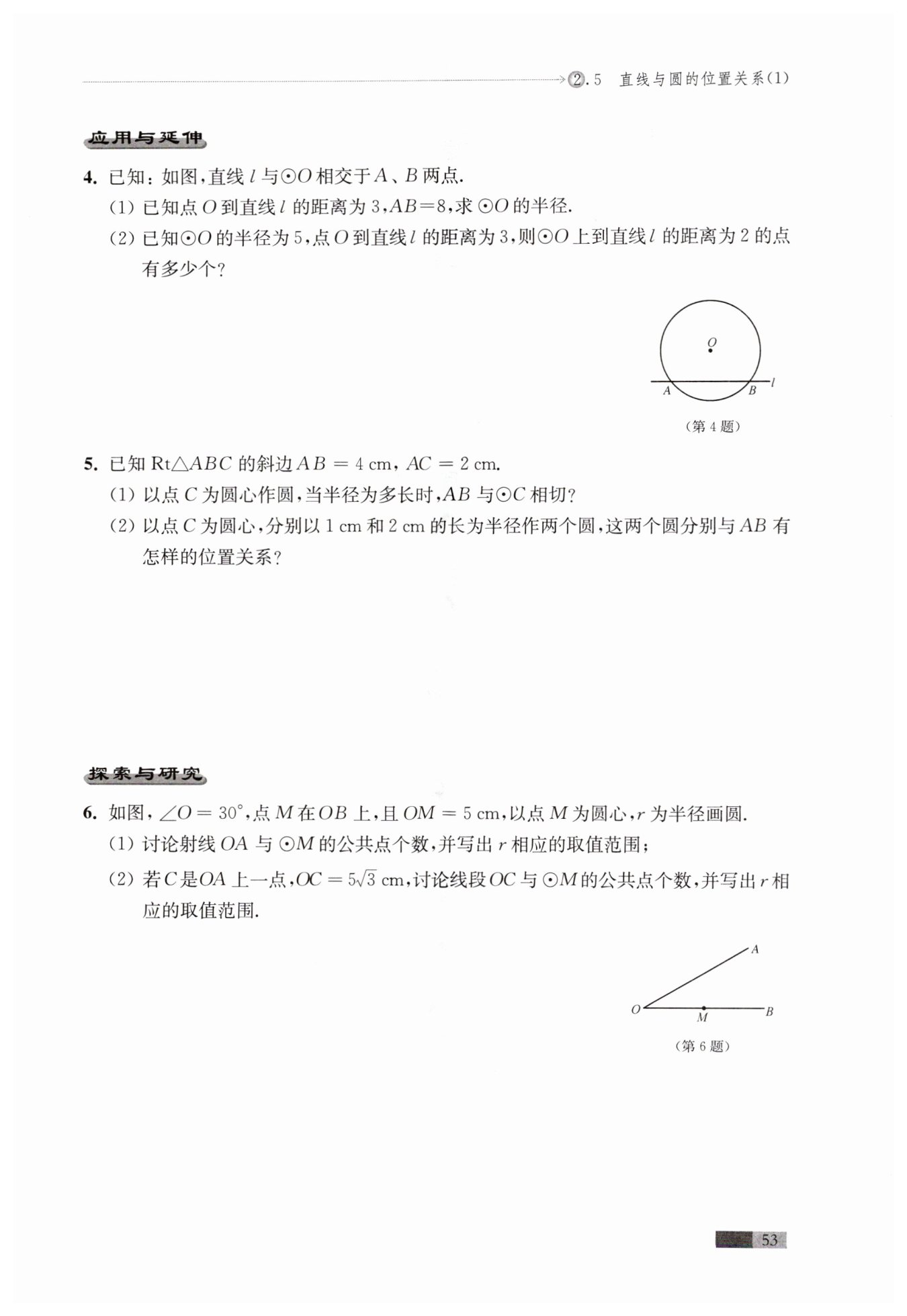 ∵?$OE = 3\ \mathrm {cm} >2\ \mathrm {cm}$?