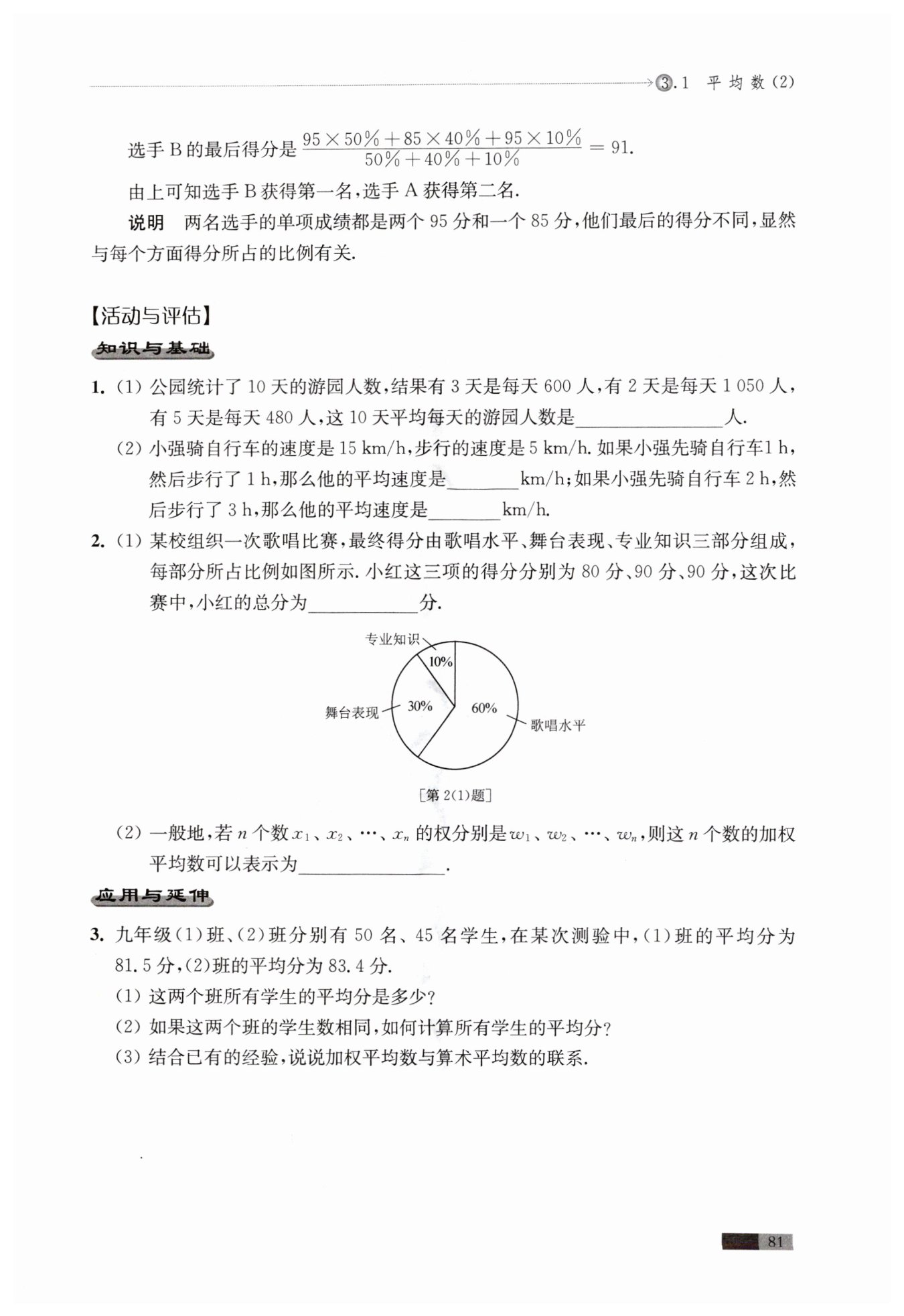 解:?$ (1) (50×81.5+45×83.4) ÷(50+45 ) =82.4($?分?$)$?