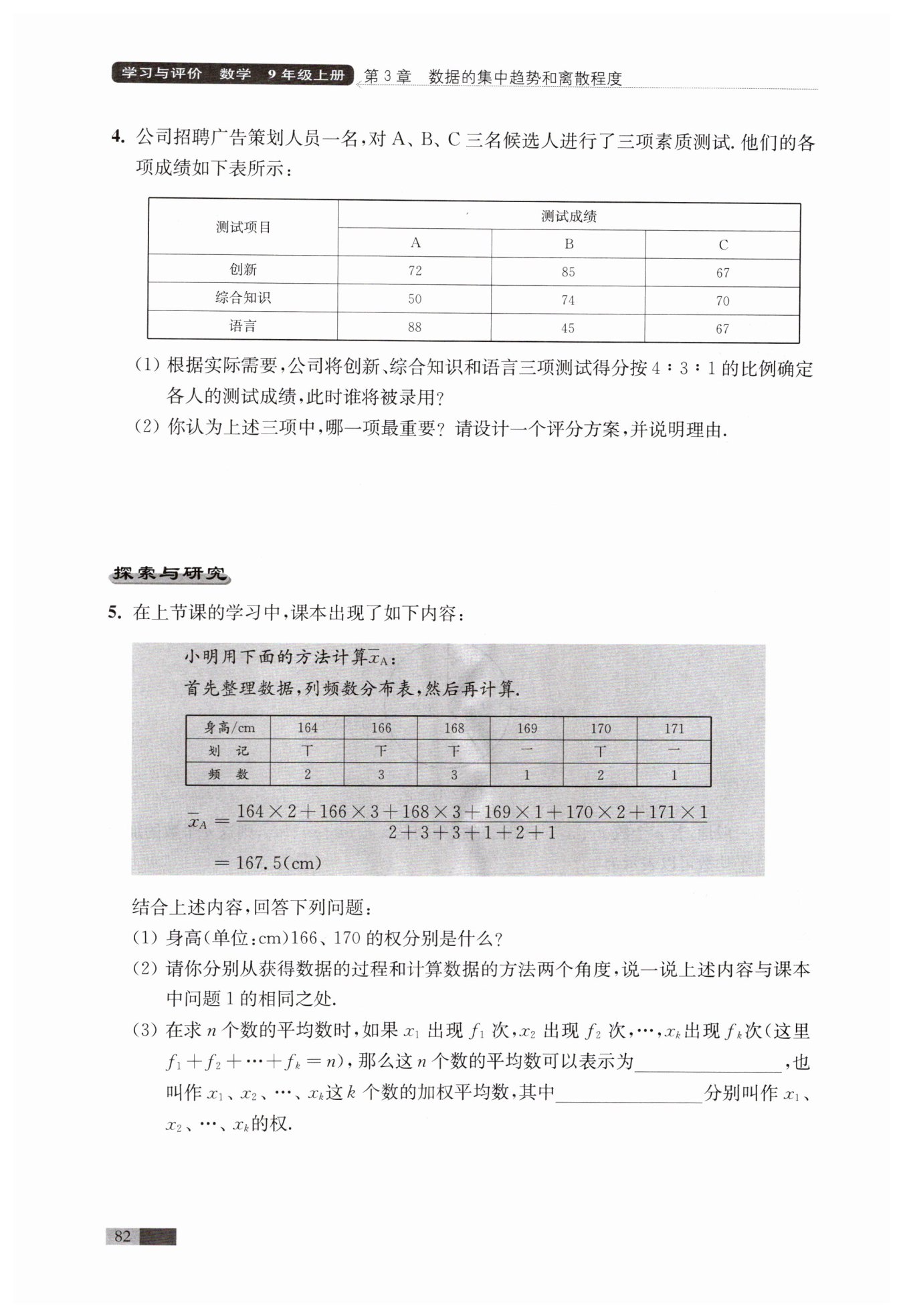 ?$ B$?的測試成績?yōu)?$ \frac {85 × 4+74×3+45× 1}{4+3+1}= 75.875($?分?$)$?