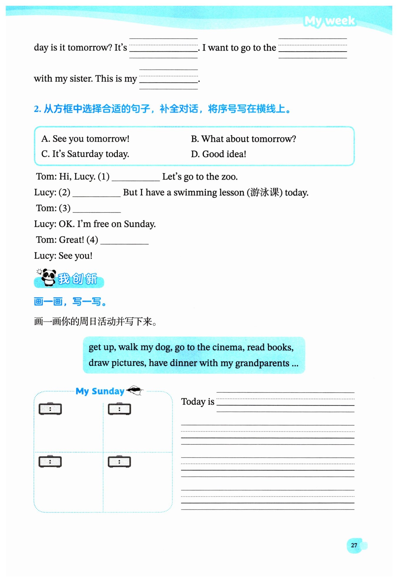 the park. In the afternoon, I go to